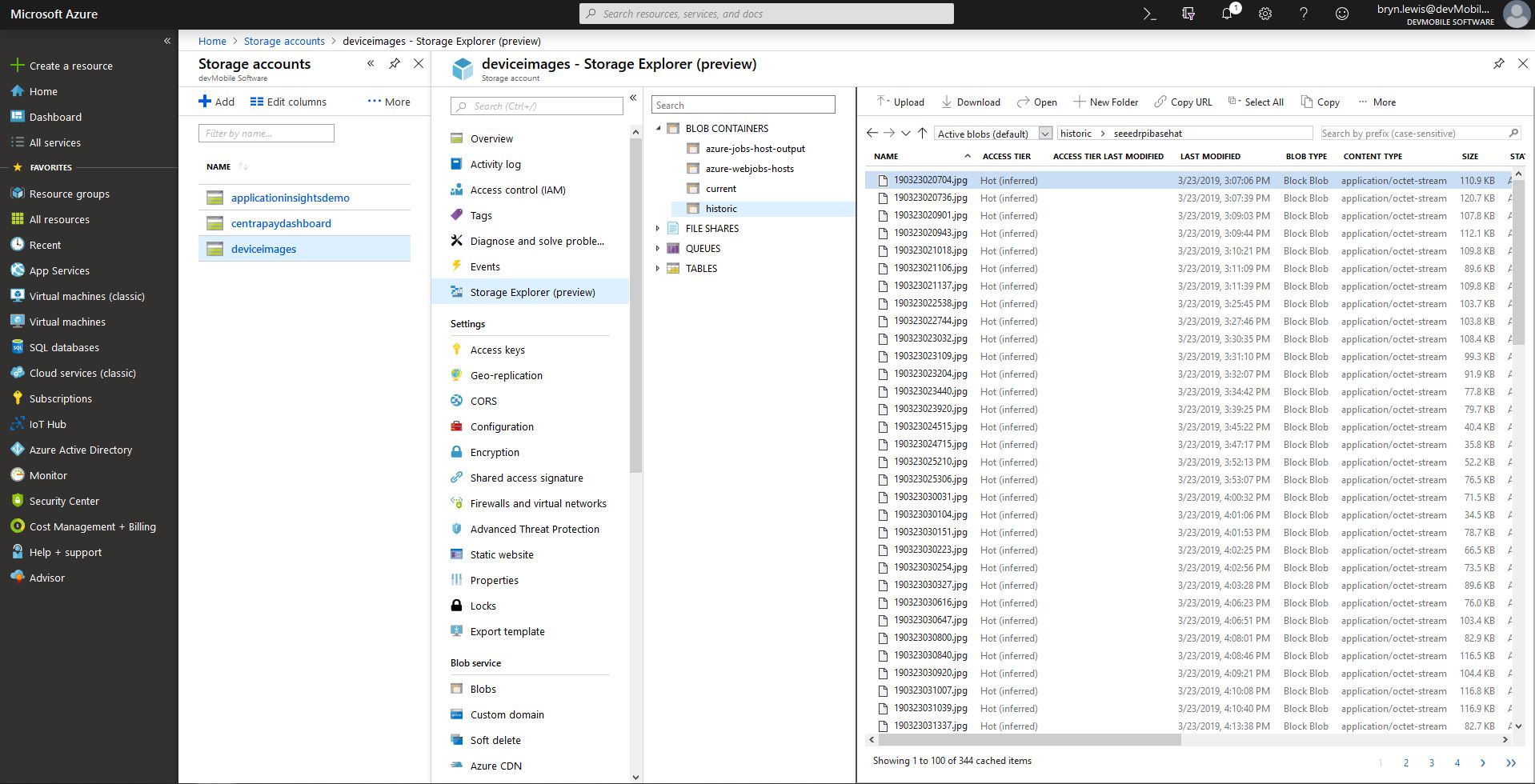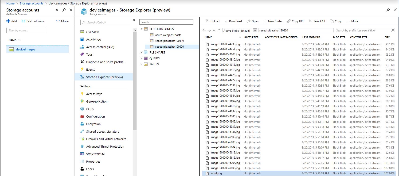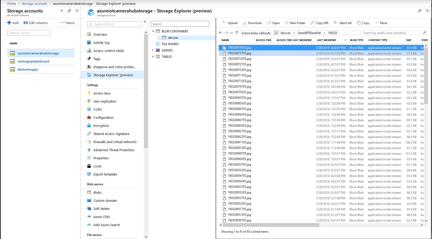 The images in Azure Storage could then be assembled into a video using a tool like Time Lapse Creator or processed with Azure Custom Vision Service.