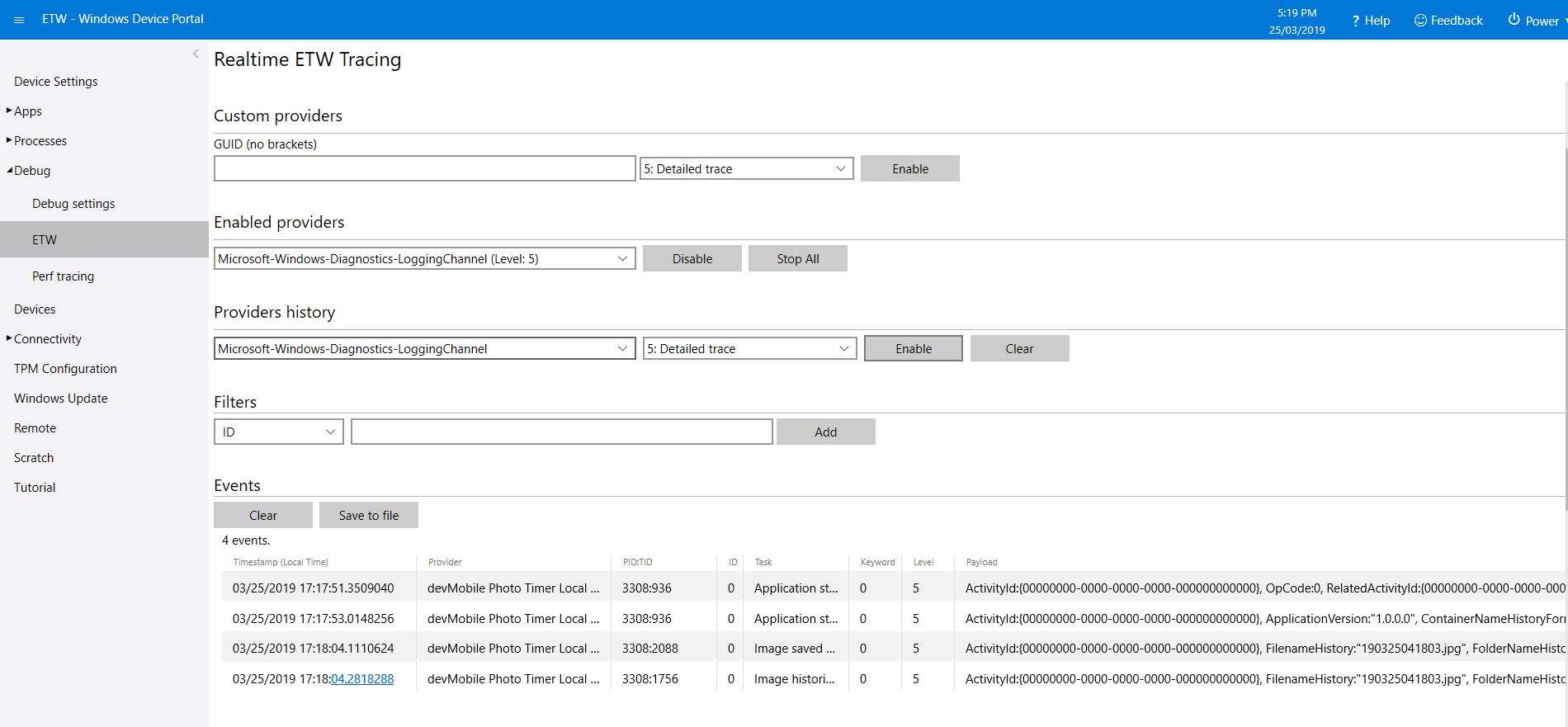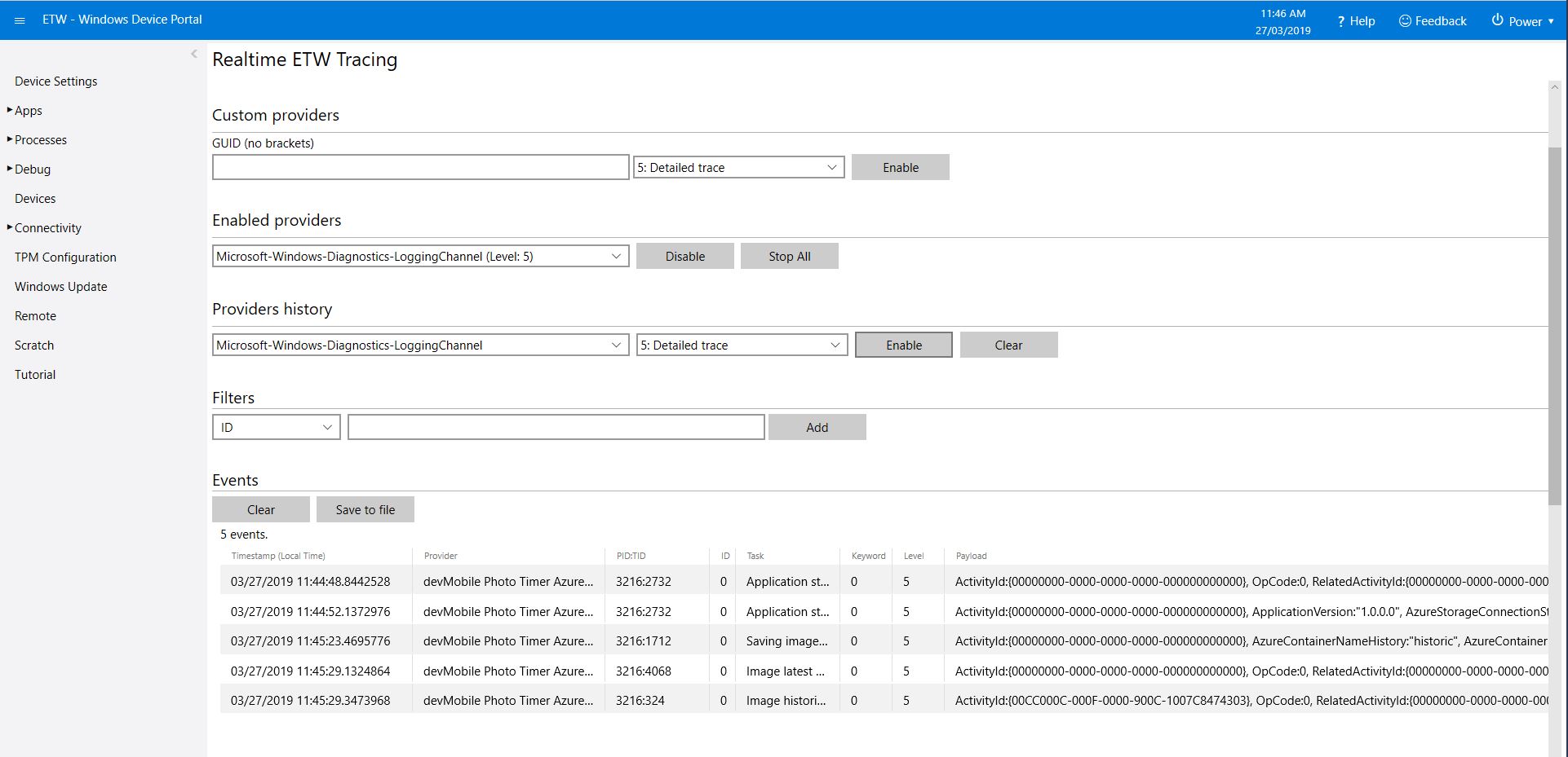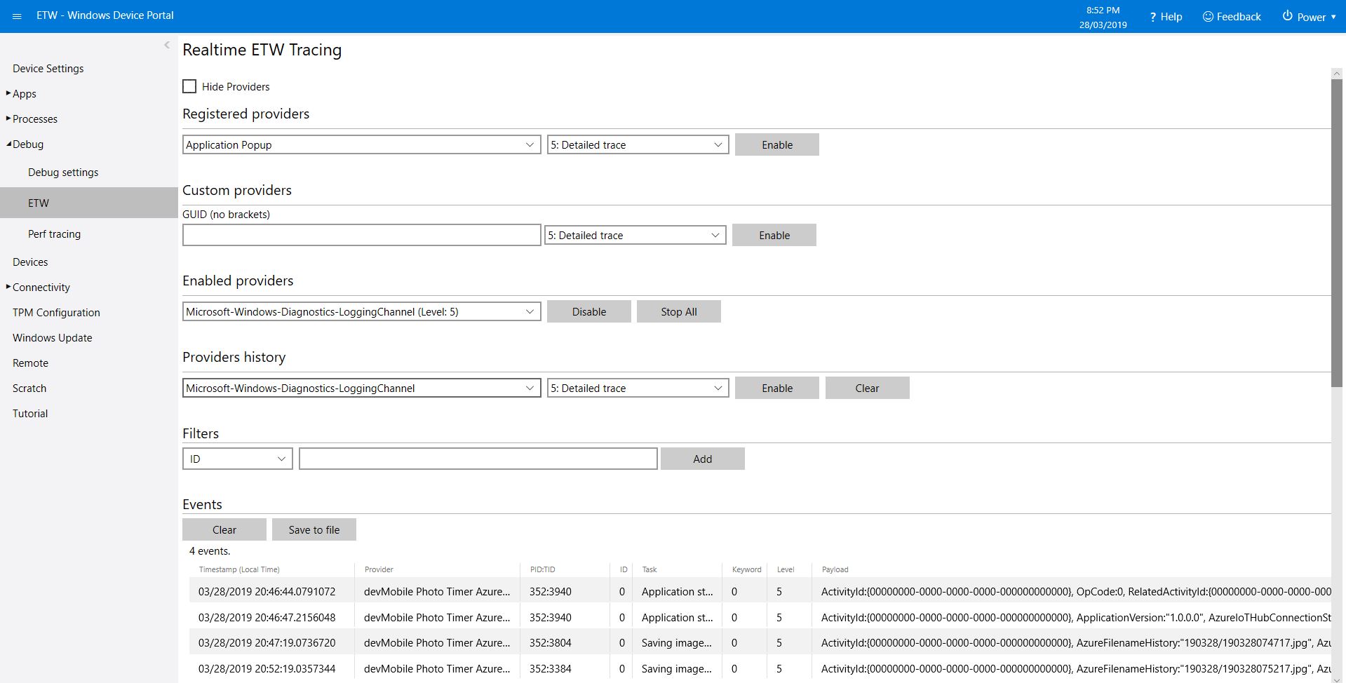 private readonly LoggingChannel logging = new LoggingChannel("devMobile Photo Timer Azure IoT Hub Storage", null, new Guid("4bd2826e-54a1-4ba9-bf63-92b73ea1ac4a"));