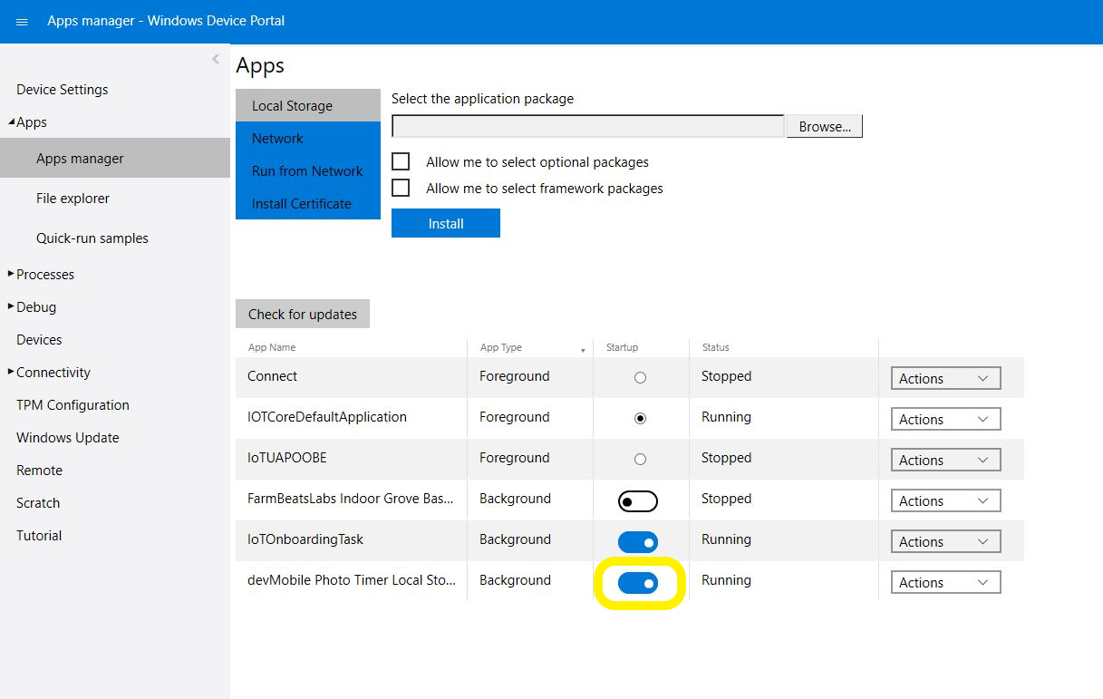 Which can be downloaded, modified then uploaded using the portal file explorer application. If you want to make the application run on device start-up the radio button below needs to be selected.