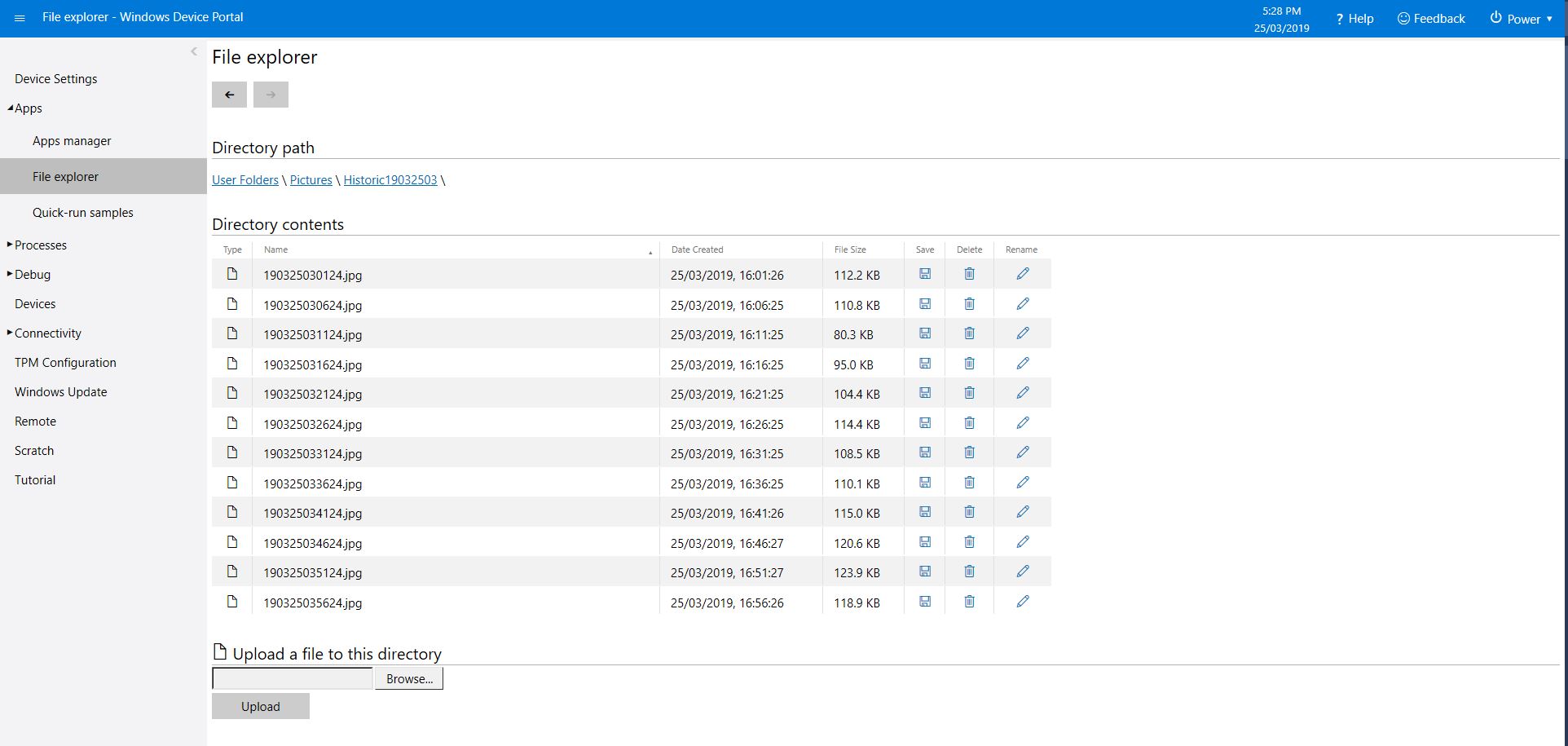 After building a couple of time lapse camera applications for Windows 10 IoT Core I built a version which uploads the images to the Azure storage account associated with an Azure IoT Hub.