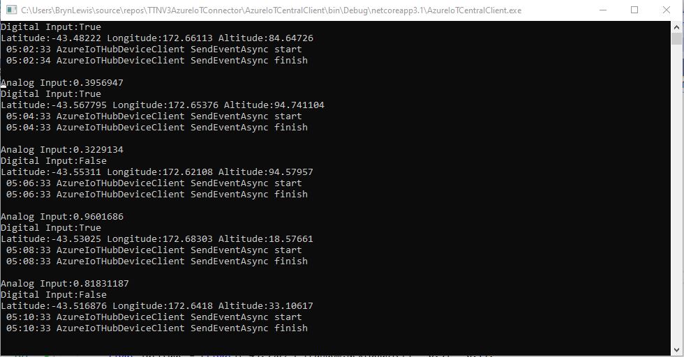 My Azure IoT Central client application displays the generated message including the decoded payload field which is used by the built in Low Power Protocol(LPP) decoder/encoder and other custom encoders/decoders.