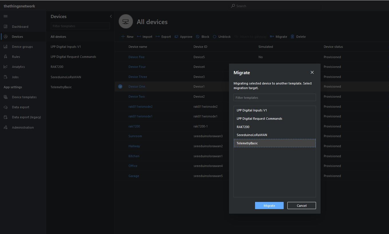 There was a lot of “trial and error” (26 template versions) required to figure out how to configure commands and queued commands so they can and used in TTN downlink payloads.