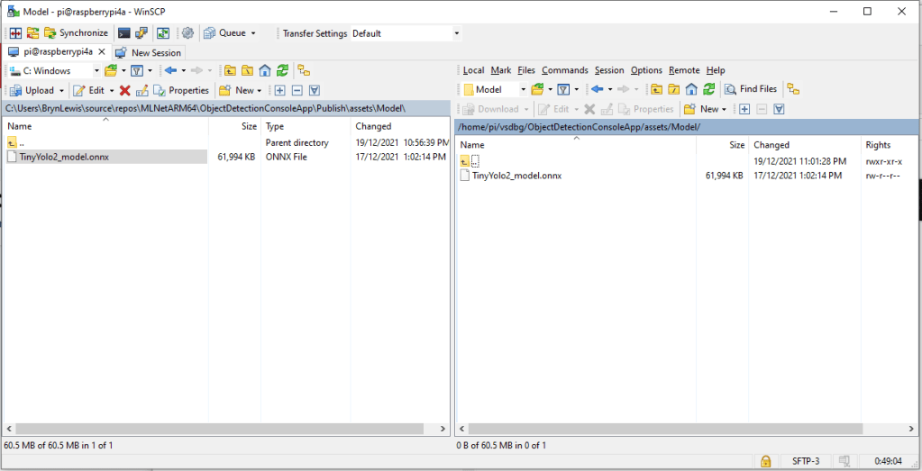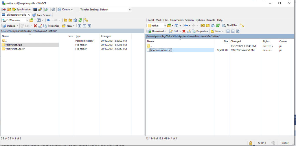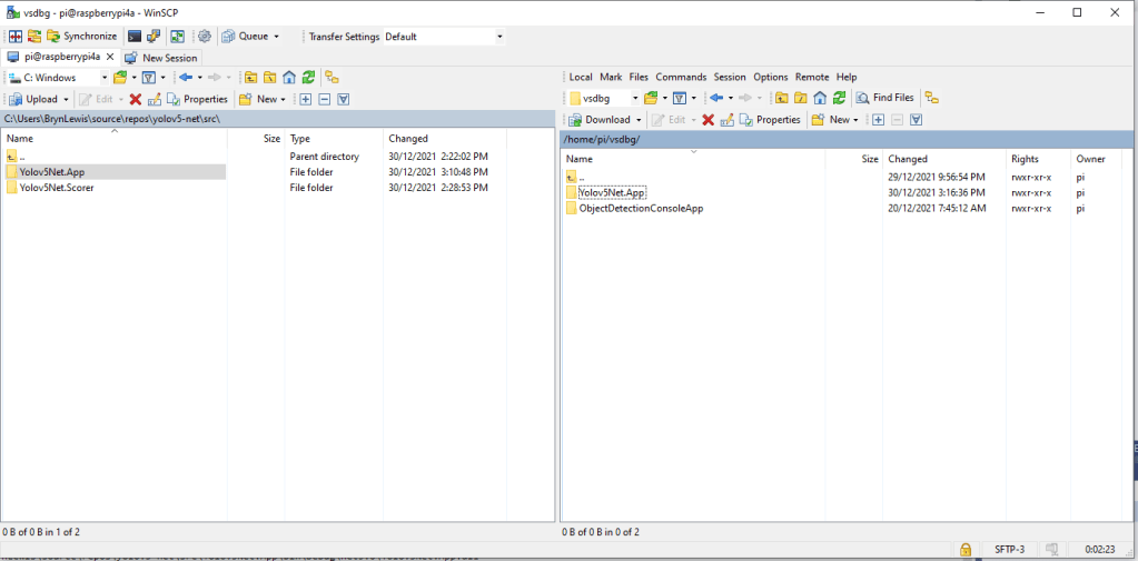 To deploy applications I often copy the contents of the “publish” directory to the device with WinSCP. Getting the Object sample application running on my Raspberry Pi4 took a couple of attempts…