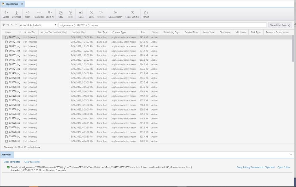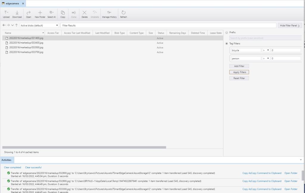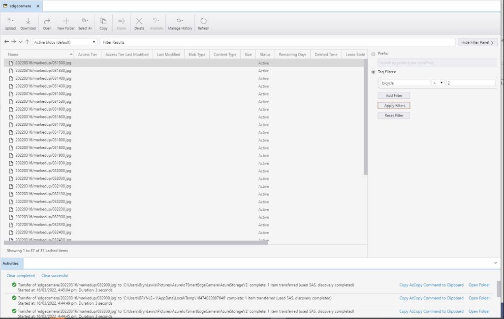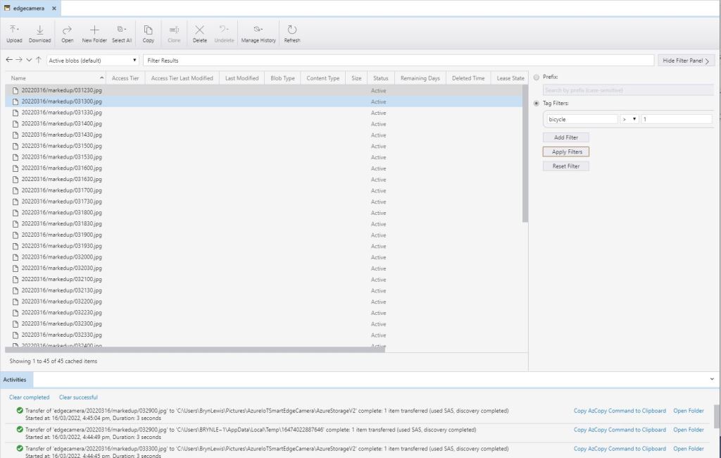 - Having both camera and marked-up images tagged so they were searchable with an application like Azure Storage Explorer was very useful.