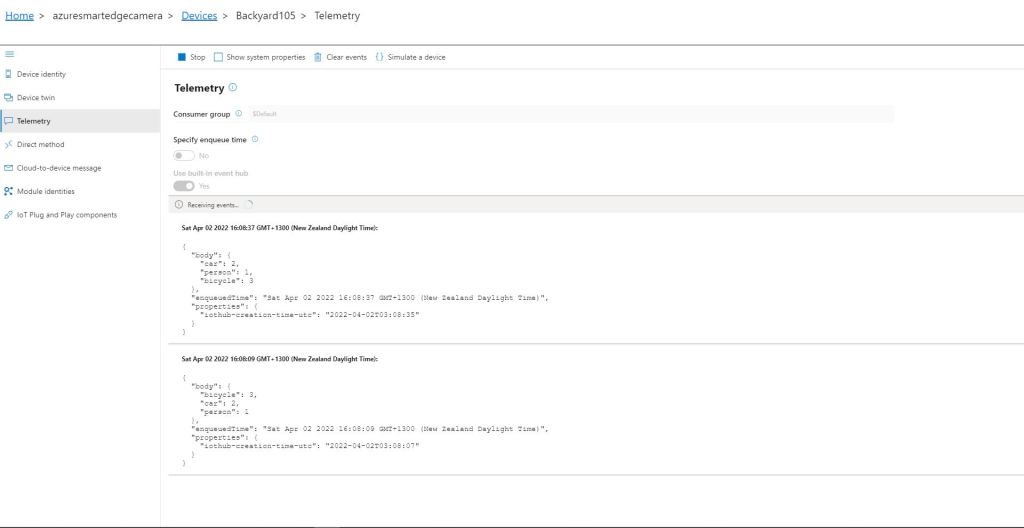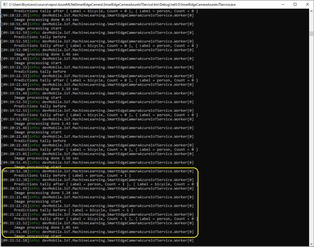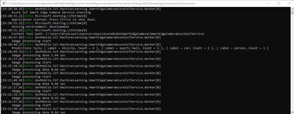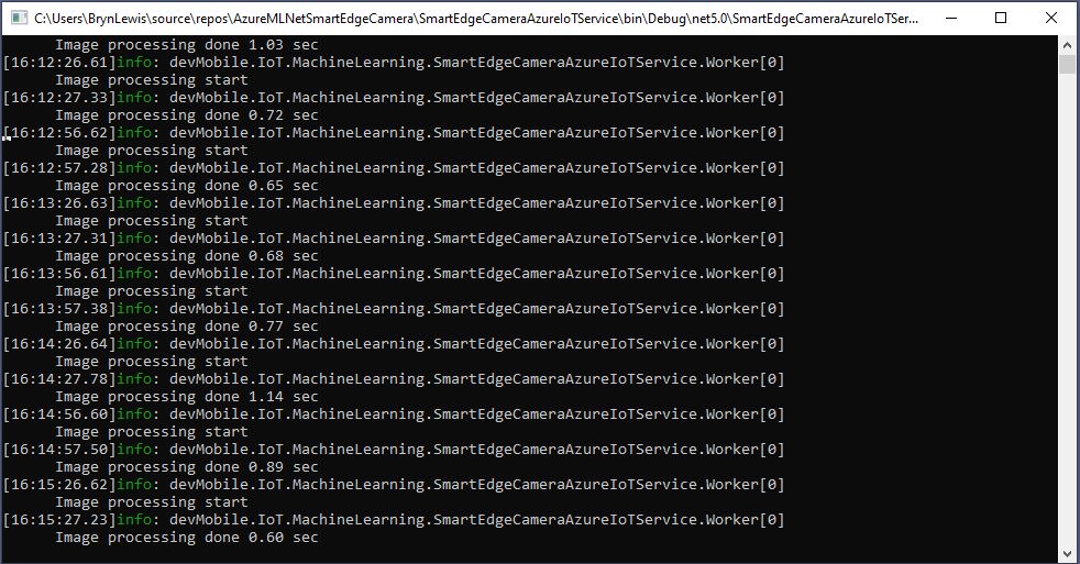 [16:39:30.72]info: devMobile.IoT.MachineLearning.SmartEdgeCameraAzureIoTService.Worker[0]