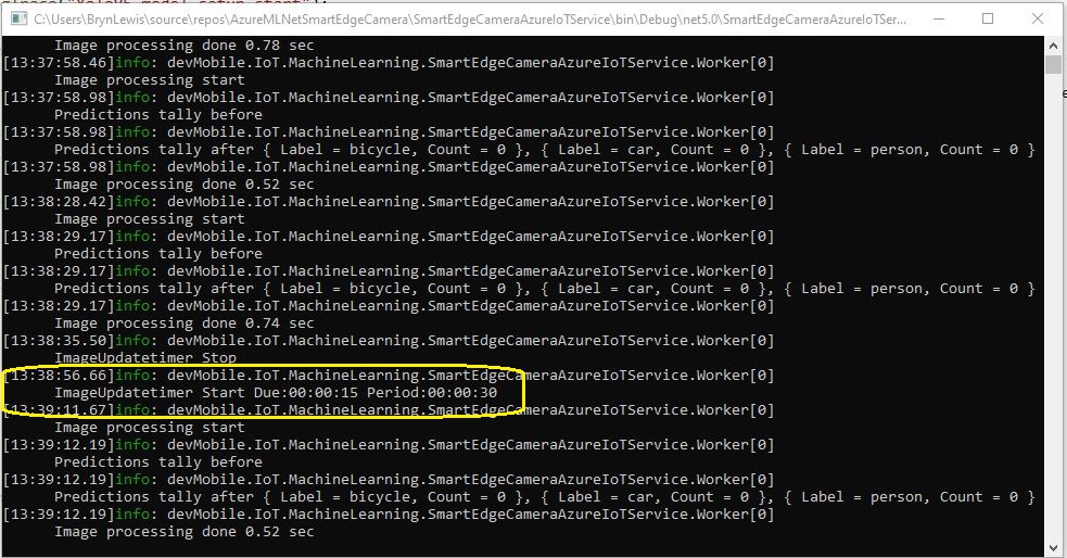 at devMobile.IoT.MachineLearning.SmartEdgeCameraAzureIoTService.Worker.ImageUpdateTimerCallback(Object state) in C:\Users\BrynLewis\source\repos\AzureMLNetSmartEdgeCamera\SmartEdgeCameraAzureIoTService\Worker.cs:line 394