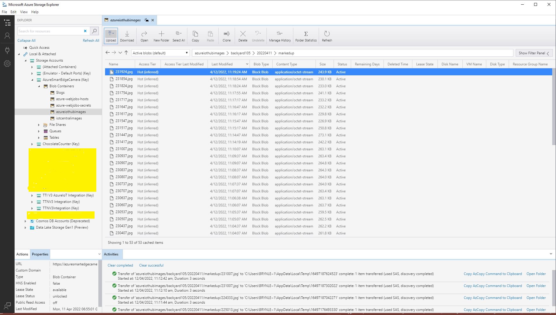 at devMobile.IoT.MachineLearning.SmartEdgeCameraAzureIoTService.Worker.UploadImage(List`1 predictions, String filepath, String blobpath) in C:\Users\BrynLewis\source\repos\AzureMLNetSmartEdgeCamera\SmartEdgeCameraAzureIoTService\Worker.cs:line 581
