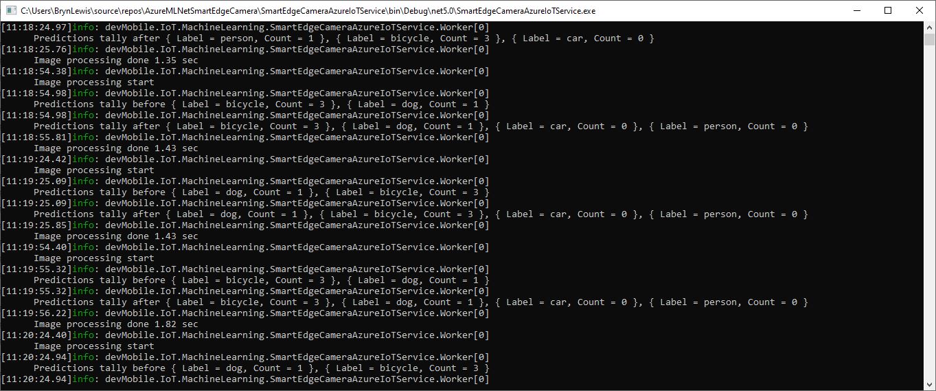 [16:39:30.72]info: devMobile.IoT.MachineLearning.SmartEdgeCameraAzureIoTService.Worker[0]