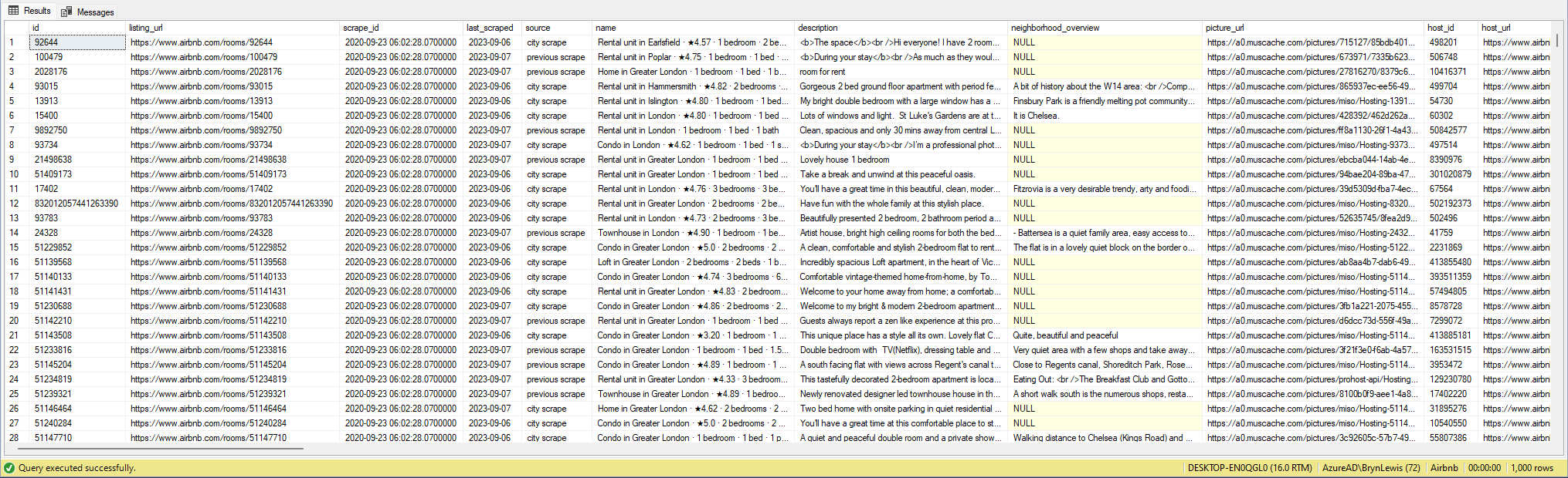 There are other data quality issues e.g. the host information is duplicated in each of their Listings e.g. host_id, host_name, host_since, host_* etc. which will need to be tidied up.