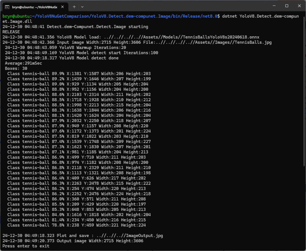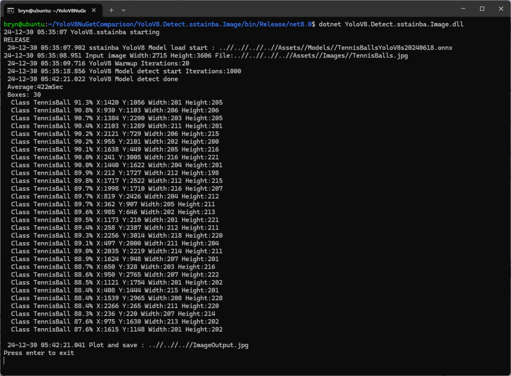 I started with the dme-compunet YoloV8 NuGet which found all the tennis balls and the results were consistent with earlier tests.