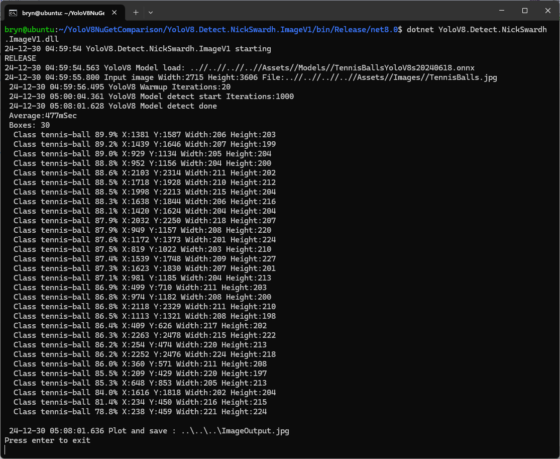 I started with the dme-compunet YoloV8 NuGet which found all the tennis balls and the results were consistent with earlier tests.