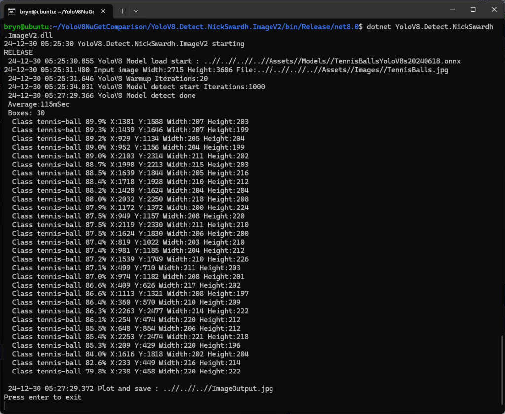 Enabling CUDA reduced the total image scaling, pre-processing, inferencing, and post processing time from 115mSec to 36mSec which is a significant improvement.