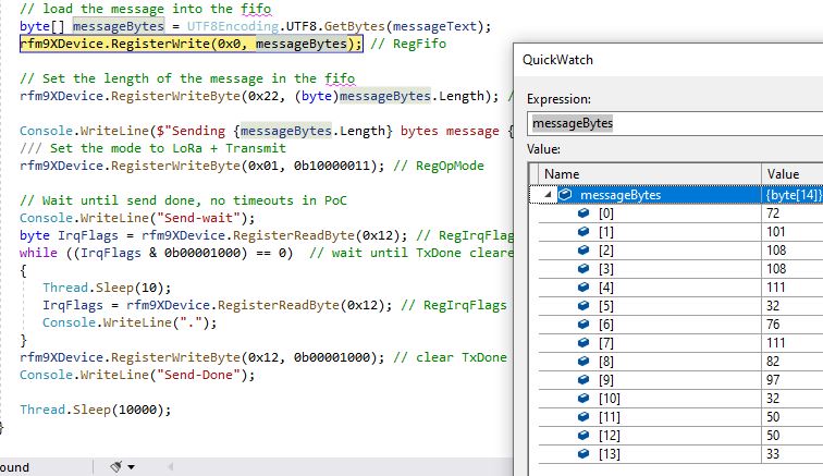 rfm9XDevice.RegisterWrite(0x0, messageBytes); // RegFifo
