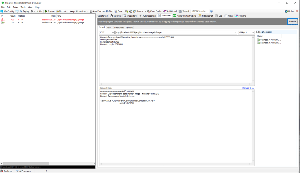 This implementation doesn’t support the uploading of multiple images or the streaming of larger images but would be sufficient for uploading thumbnails etc.