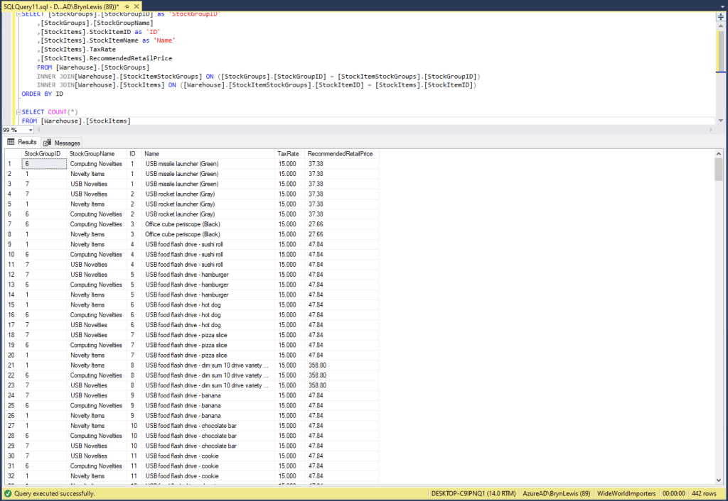 sql: @"SELECT [StockItemID] as ""ID"", [StockItemName] as ""Name"", [RecommendedRetailPrice], [TaxRate] FROM [Warehouse].[StockItems]",