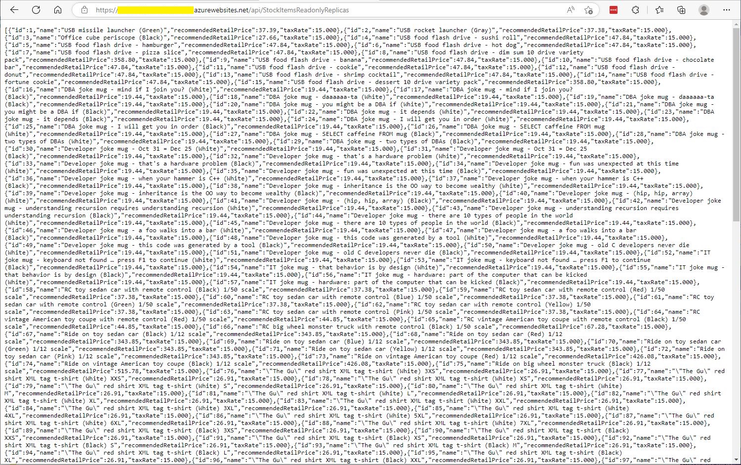 StockItemsReadOnlyReplicas Controller JSON after first replication completed