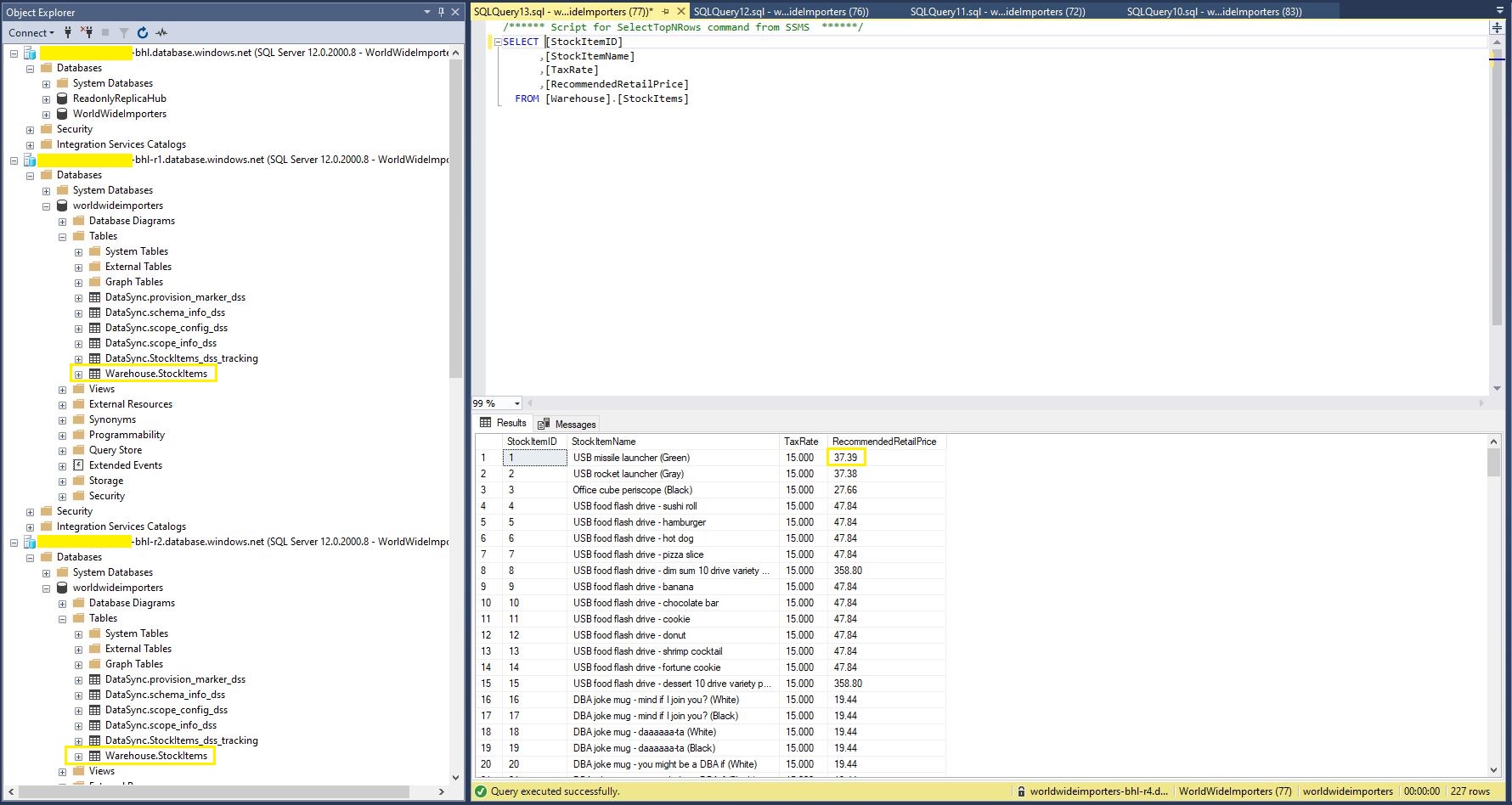 StockItems table in source database with updated RRP