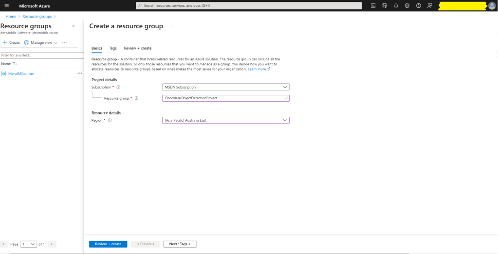 I have not included screen shots of the hardware configuration process as this has been covered by other bloggers. Though, for projects like this I always create a new resource group so I can easily delete all the resources so my Azure invoice doesn’t cause “bill shock”.