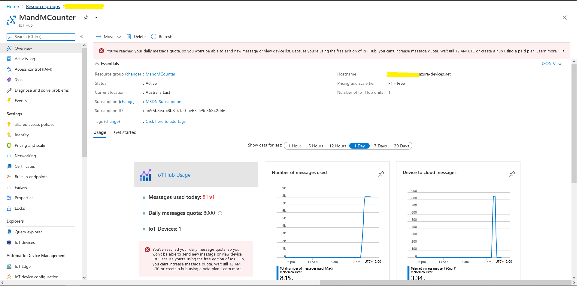 The Azure Percept generates a lot of messages and I had quickly hit the 8000 messages per day limit of the “Free Tier”.