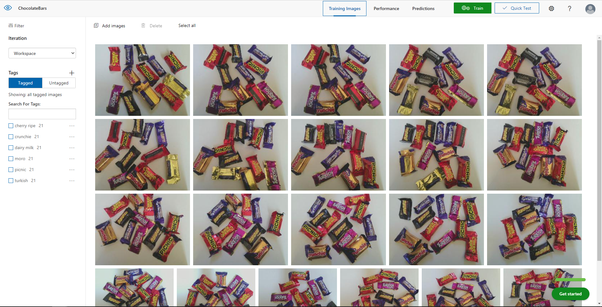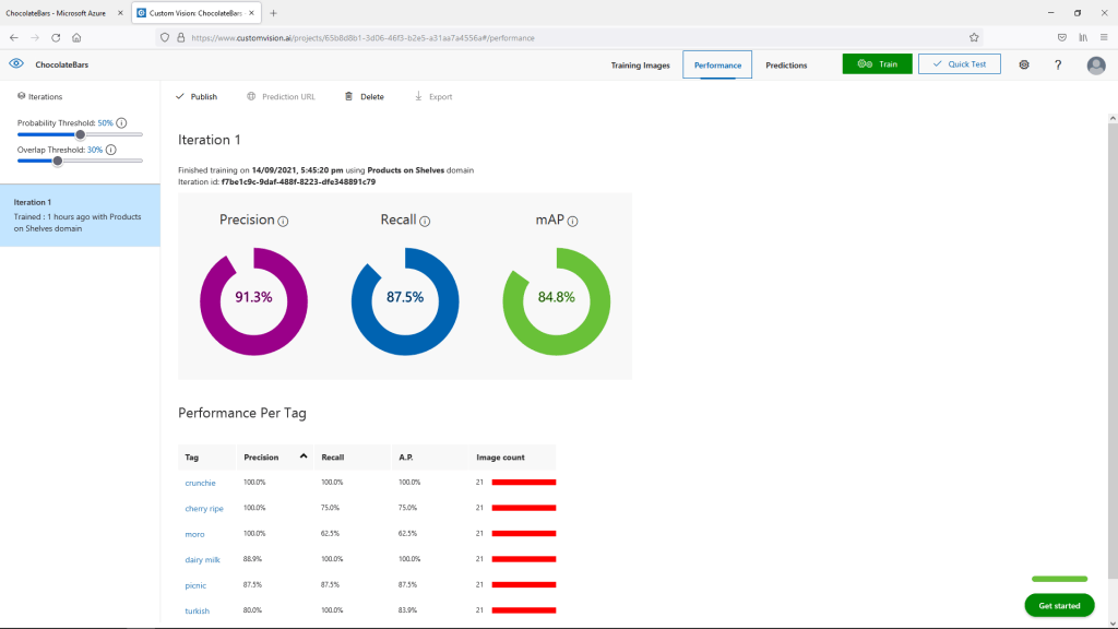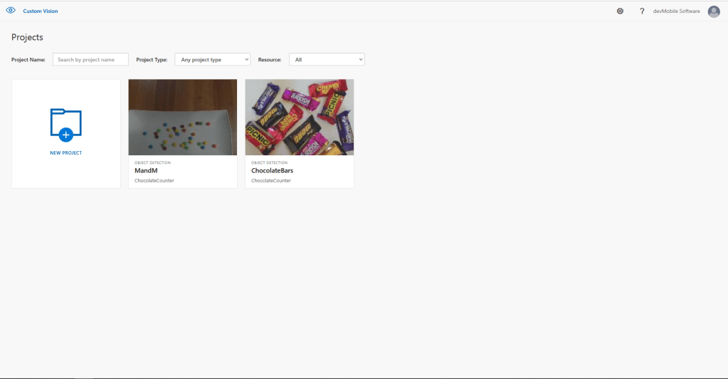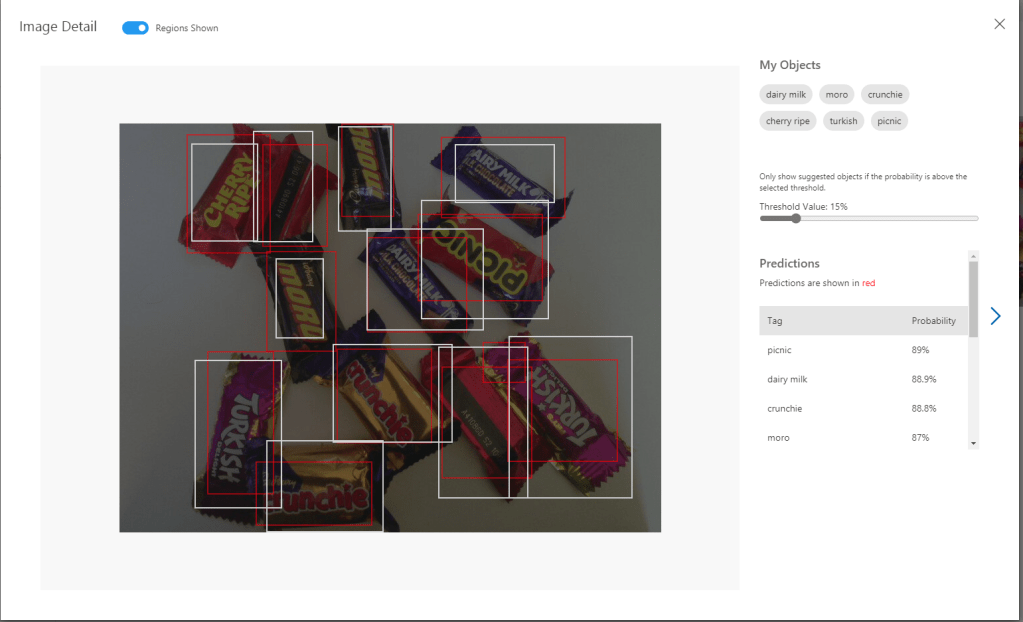 The intern created two Custom Vision projects, one for M&M’s and the other for Cadbury Favourites.