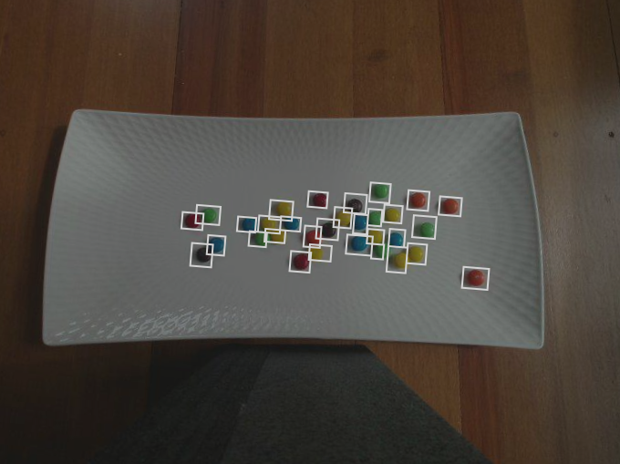 The intern then spent an afternoon drawing minimum bounding rectangles (MBRs) around the different chocolates in the images he had collected.