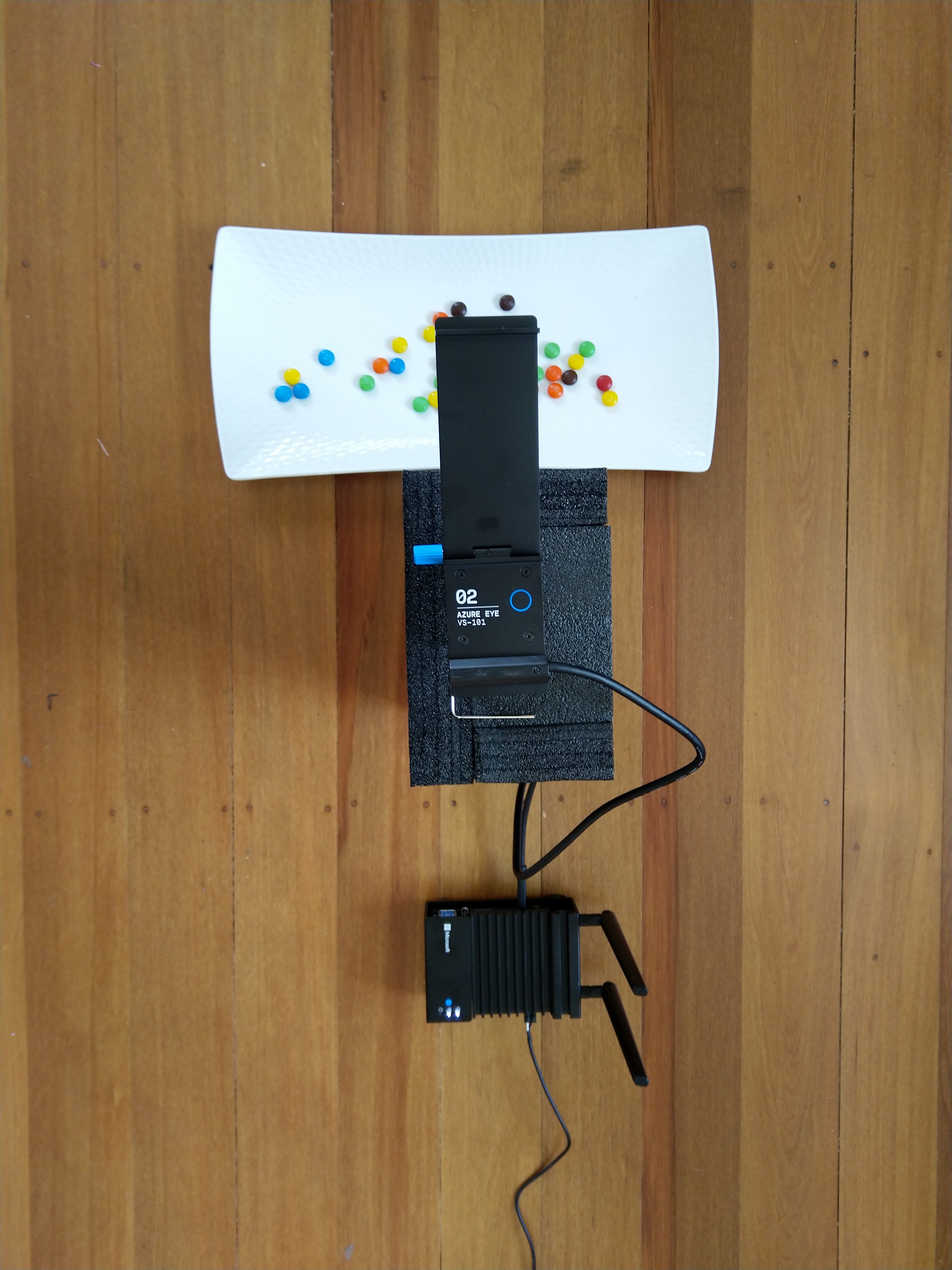The intern trialed different trays, camera orientations, and lighting as part of building a test rig on the living room floor. After some trial and error, he identified the optimal camera orientation (on top of the packing foam) and lighting (indirect sunlight with no shadows) for reliable inferencing. As this was a proof-of-concept project we limited the number of variables so we didn’t have to collect lots of images which the intern would then have to mark up.