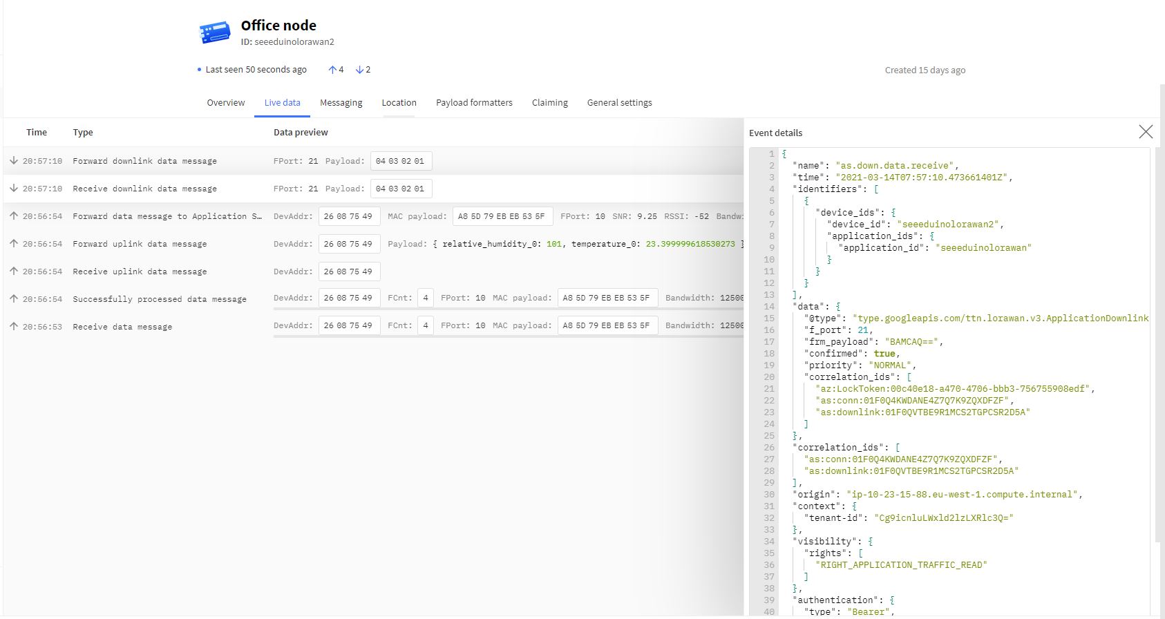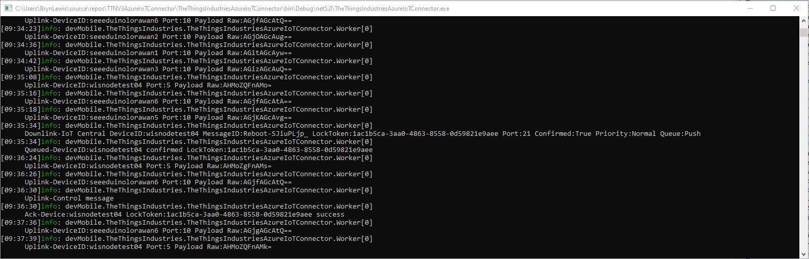 _logger.LogInformation("SendAsync: OrganizationId:{0} DeviceType:{1} DeviceId:{2} UserApplicationId:{3} Data:{4} Enabled:{5}", organisationId, deviceType, deviceId, userApplicationId, Convert.ToBase64String(data), _bumblebeeHiveSettings.DownlinkEnabled);