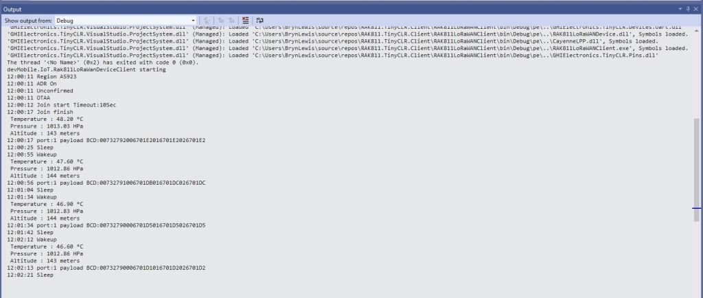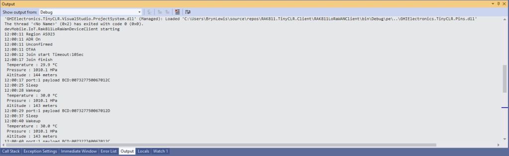 Debug.WriteLine("devMobile.IoT.SeeedE5LoRaWANDeviceClient starting");