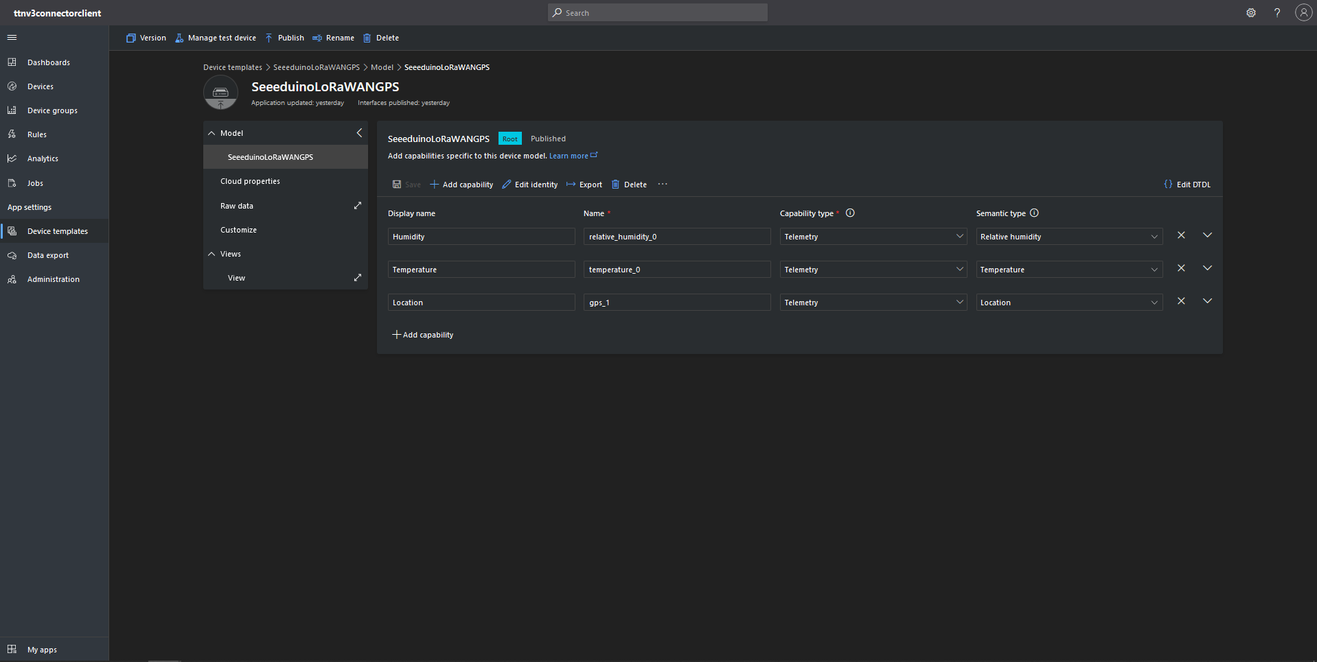 I then used Azure IoT Explorer to configure devices, view uplink traffic etc.