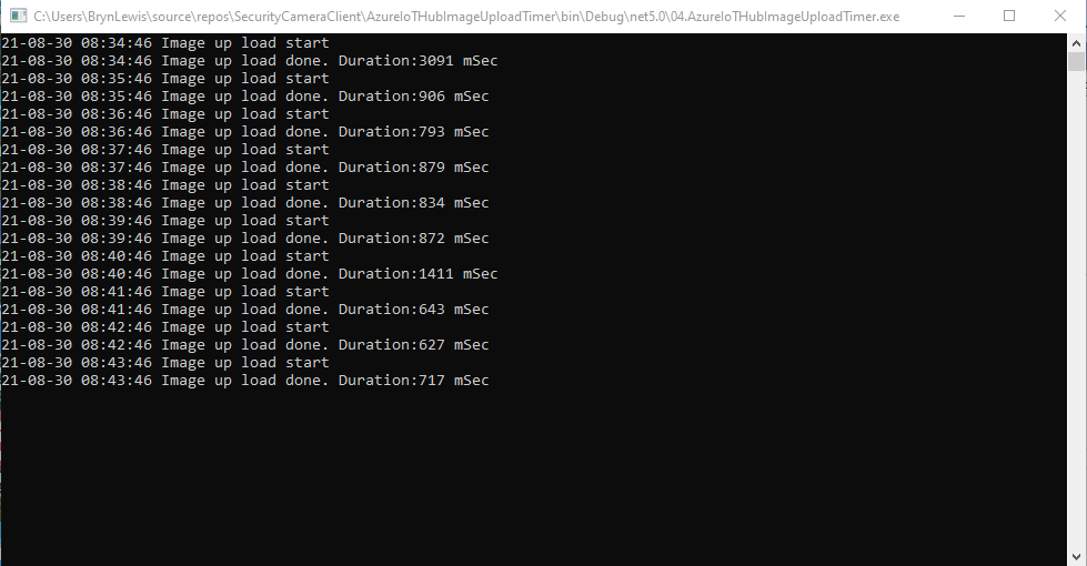 I tried to keep the .Net Core 5 console applications as simple as possible, they download an image from the camera “snapshot” endpoint (In this case http://10.0.0.47:85/images/snapshot.jpg), save it to the local filesystem and then upload it.