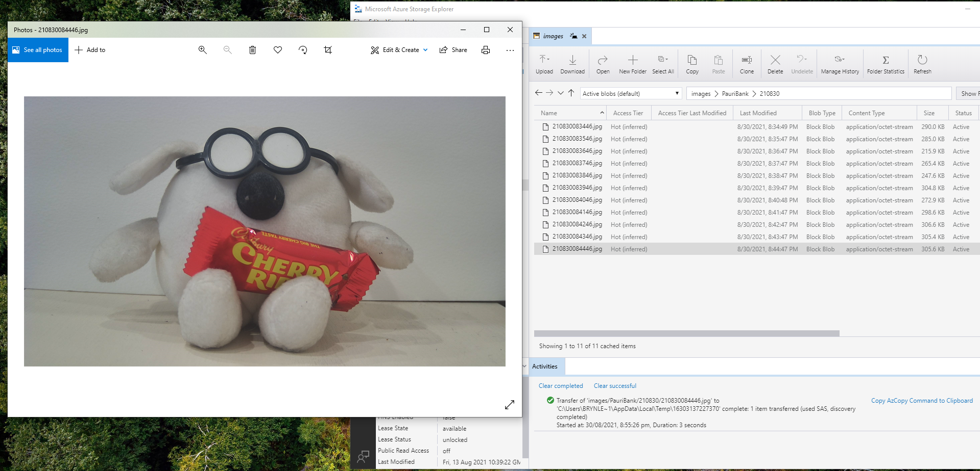 Using Azure Storage Explorer I could view and download the images uploaded by the application(s) running on my development machine and Raspberry PI