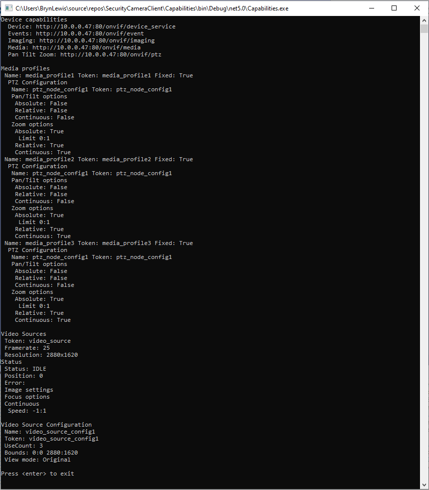 Now that the basics are working my plan is to figure out how to control the camera using Azure IoT Hub method calls, display live Real Time Streaming Protocol(RTSP) using Azure IoT Hub Device Streams, upload images to Azure Cognitive Services for processing and use ML.Net to process them locally.