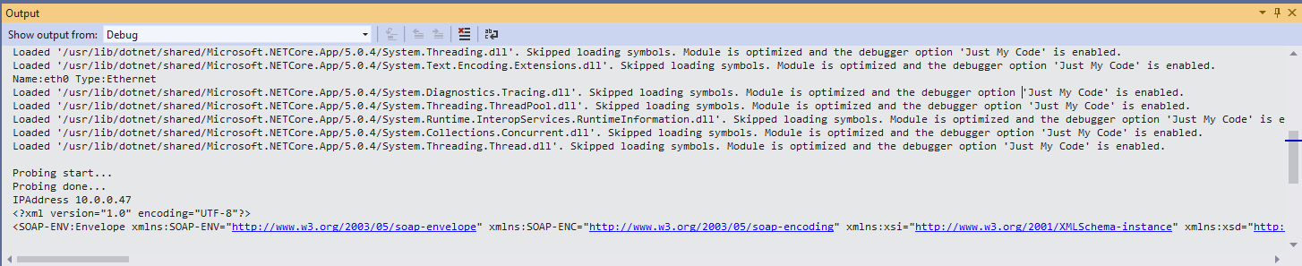 After confirming the program was working I used the excellent RaspberryDebugger to download the application and debug it on my Raspberry PI 3 running the Raspberry PI OS.