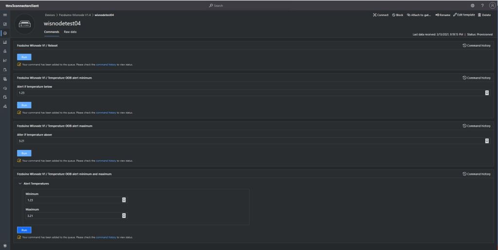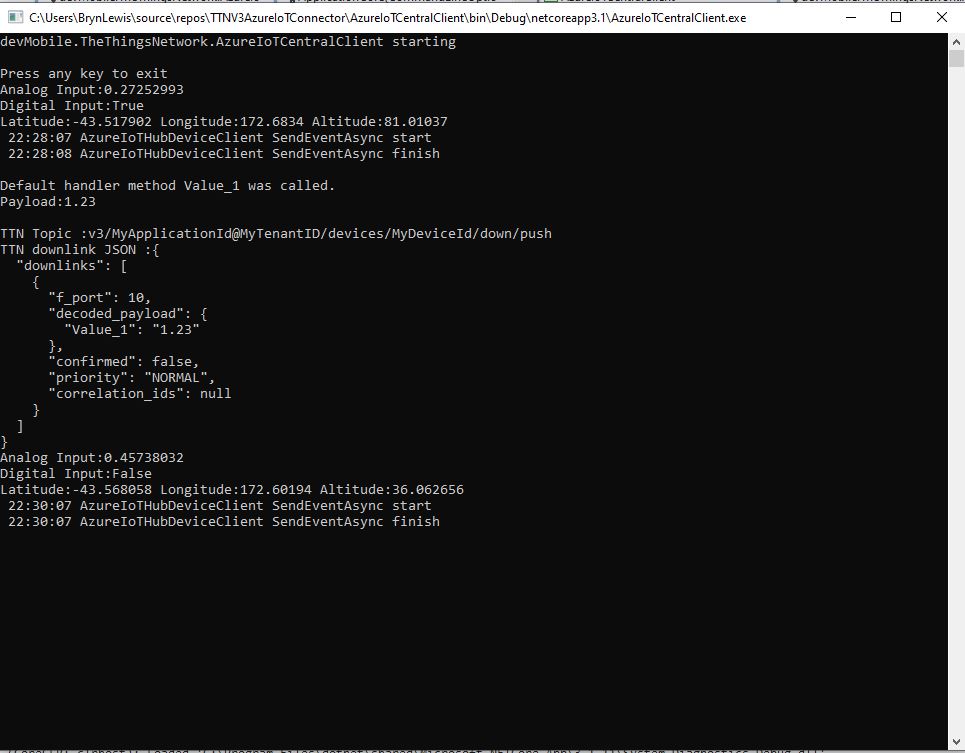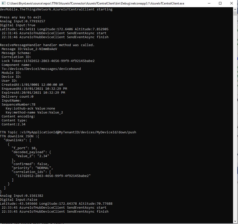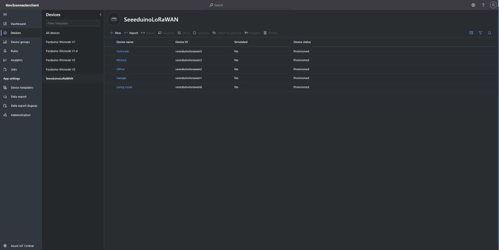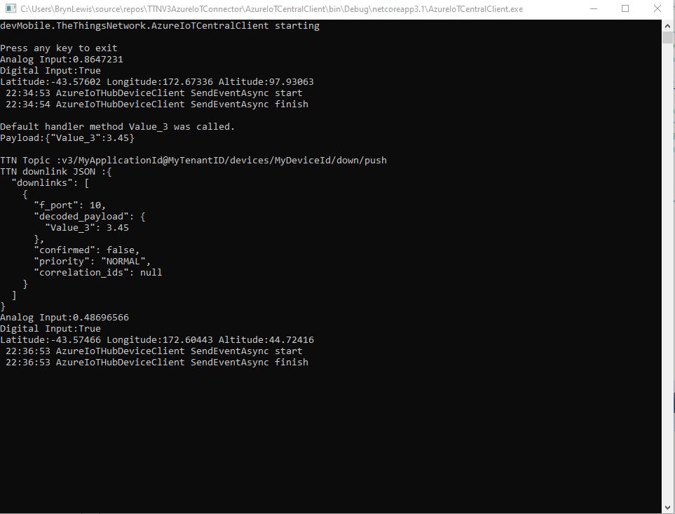 The TTI Connector supports the Azure IoT Hub Device Provisioning Service(DPS) which is required (it is possible to provision individual devices but this intended for small deployments or testing) for Azure IoT Central applications. The TTI Connector implementation also supports Azure IoT Central Digital Twin Definition Language (DTDL V2) for “automagic” device provisioning.