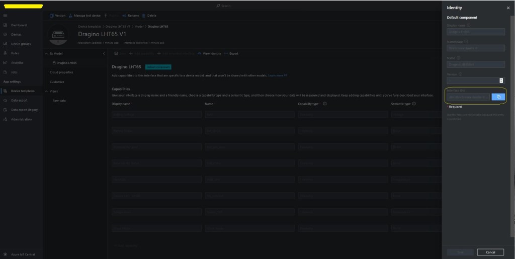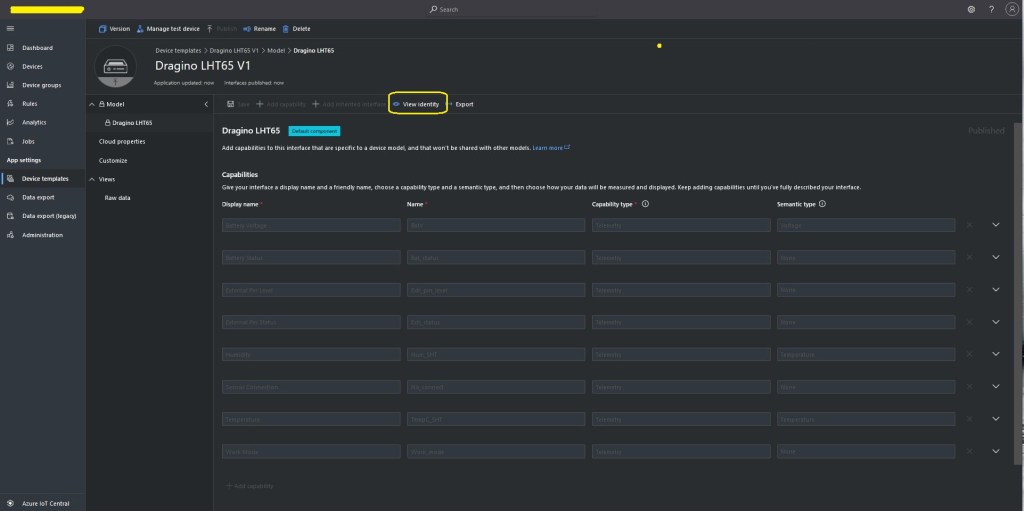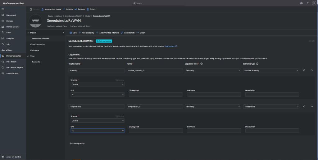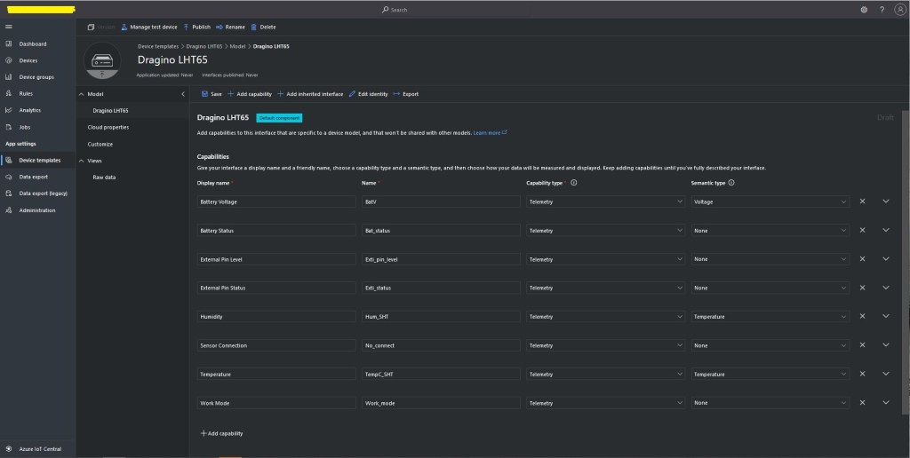 I then created an Azure IoT Central template for my RAK3172 breakout board based.Net Core powered test device.