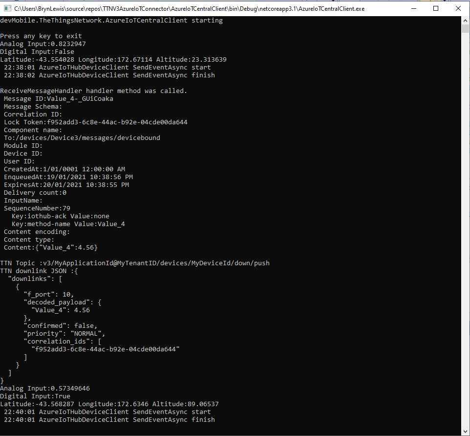 The TTI Connector supports the Azure IoT Hub Device Provisioning Service(DPS) which is required (it is possible to provision individual devices but this intended for small deployments or testing) for Azure IoT Central applications. The TTI Connector implementation also supports Azure IoT Central Digital Twin Definition Language (DTDL V2) for “automagic” device provisioning.
