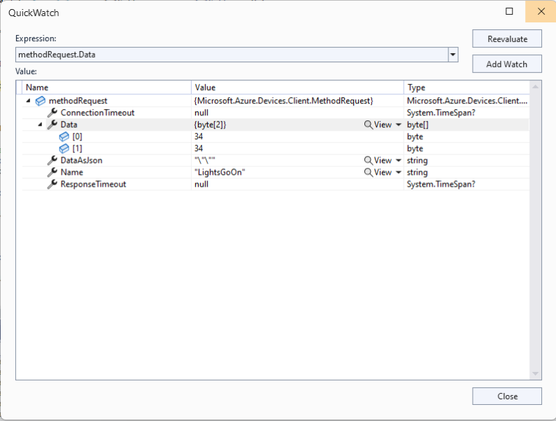 The Azure IoT Explorer payload for an empty message contained two ” characters which is a bit odd. I will have to build a test application which uses the Azure IoT Hub C2D direct method API to see if this is a “feature”.