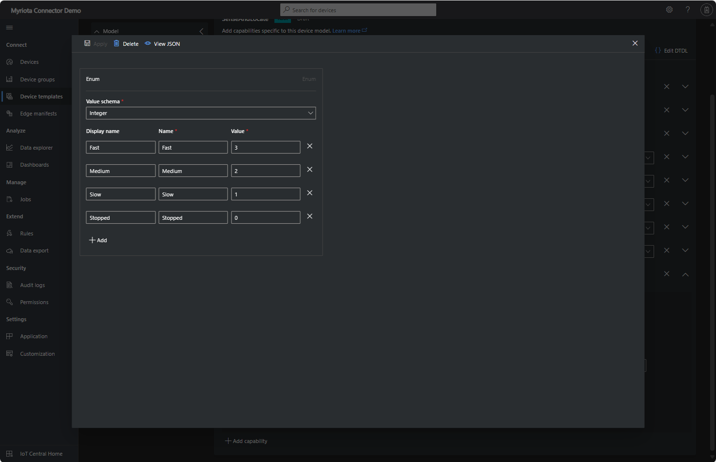 Sense and Locate Azure IoT Central Template Fan Speed Enumeration