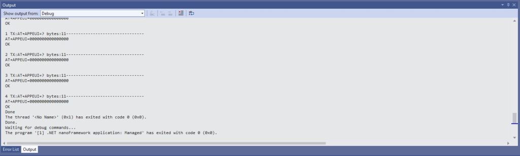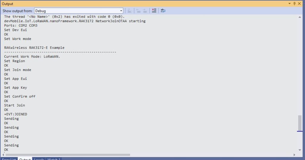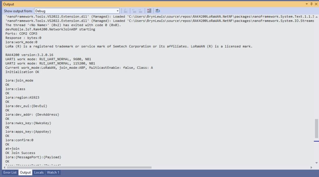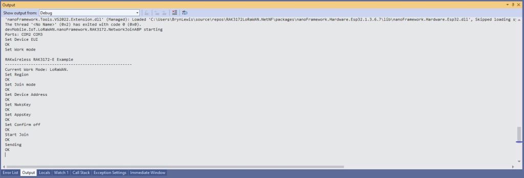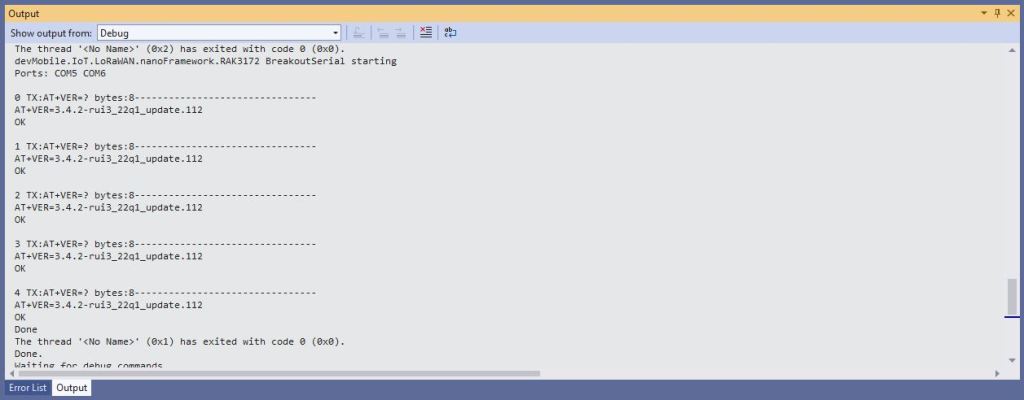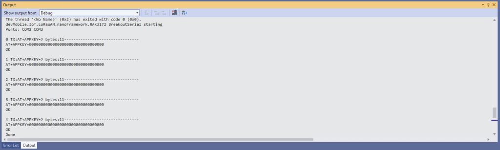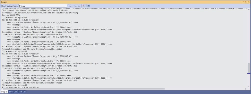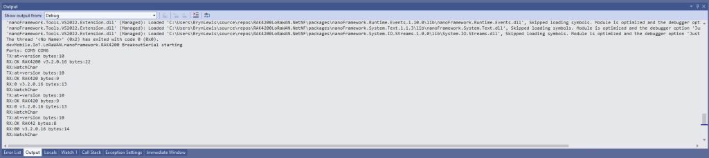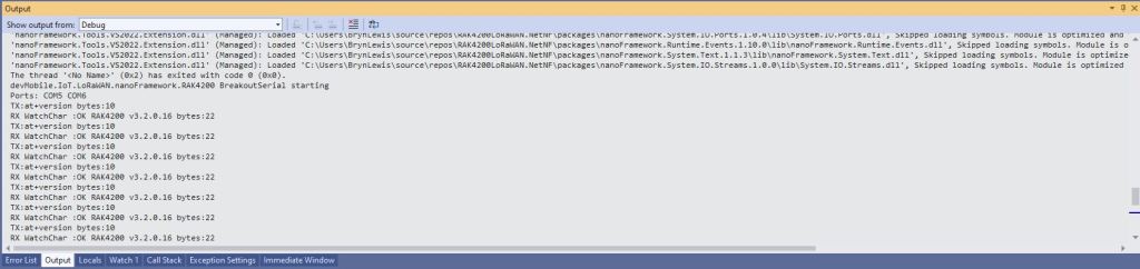 Debug.WriteLine("devMobile.IoT.LoRaWAN.nanoFramework.RAK3172 BreakoutSerial starting");