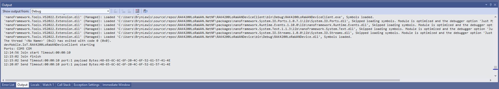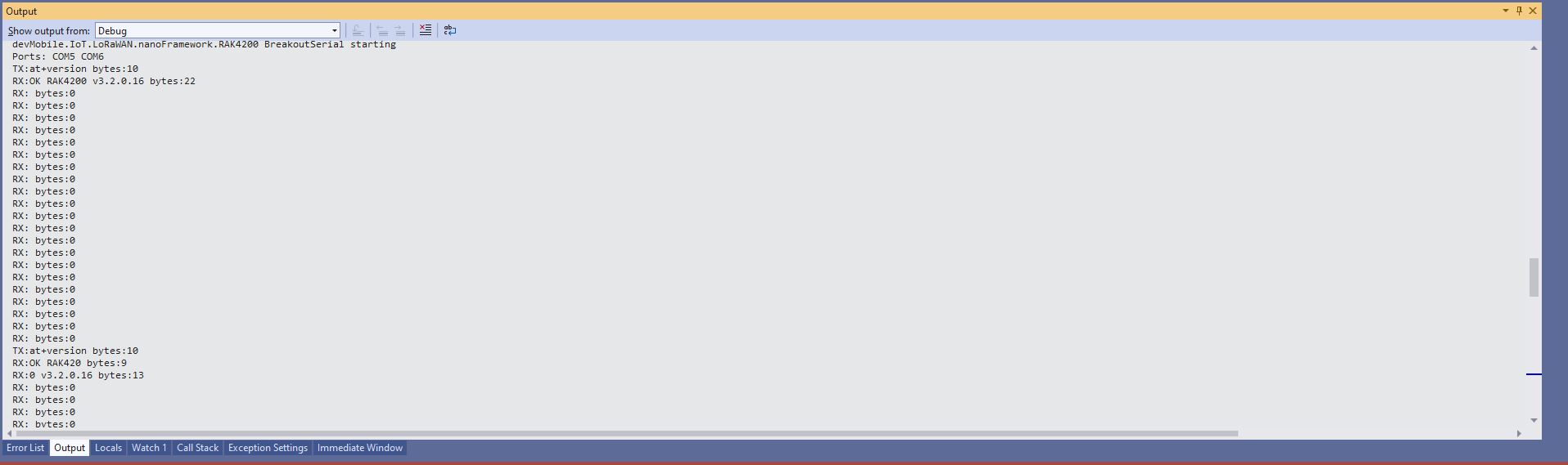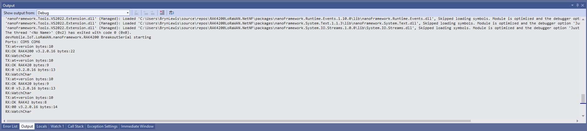 Debug.WriteLine("devMobile.IoT.LoRaWAN.nanoFramework.RAK3172 BreakoutSerial starting");