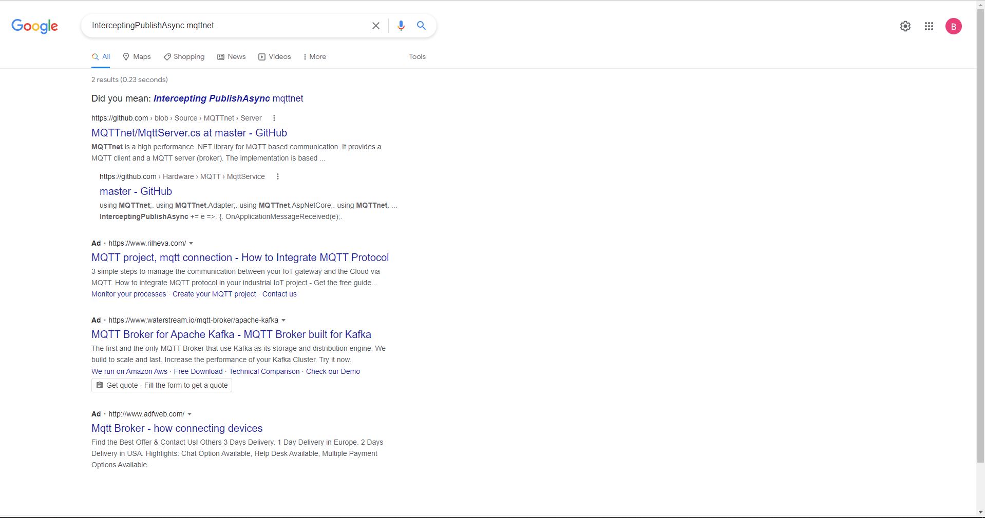 In the sample server I could see how ValidatingConnectionAsync was used to check the clientID, username and password when a device connected. I just wanted to display messages and payloads without having to use an MQTT client and it looked like InterceptingPublishAsync was a possible solution.