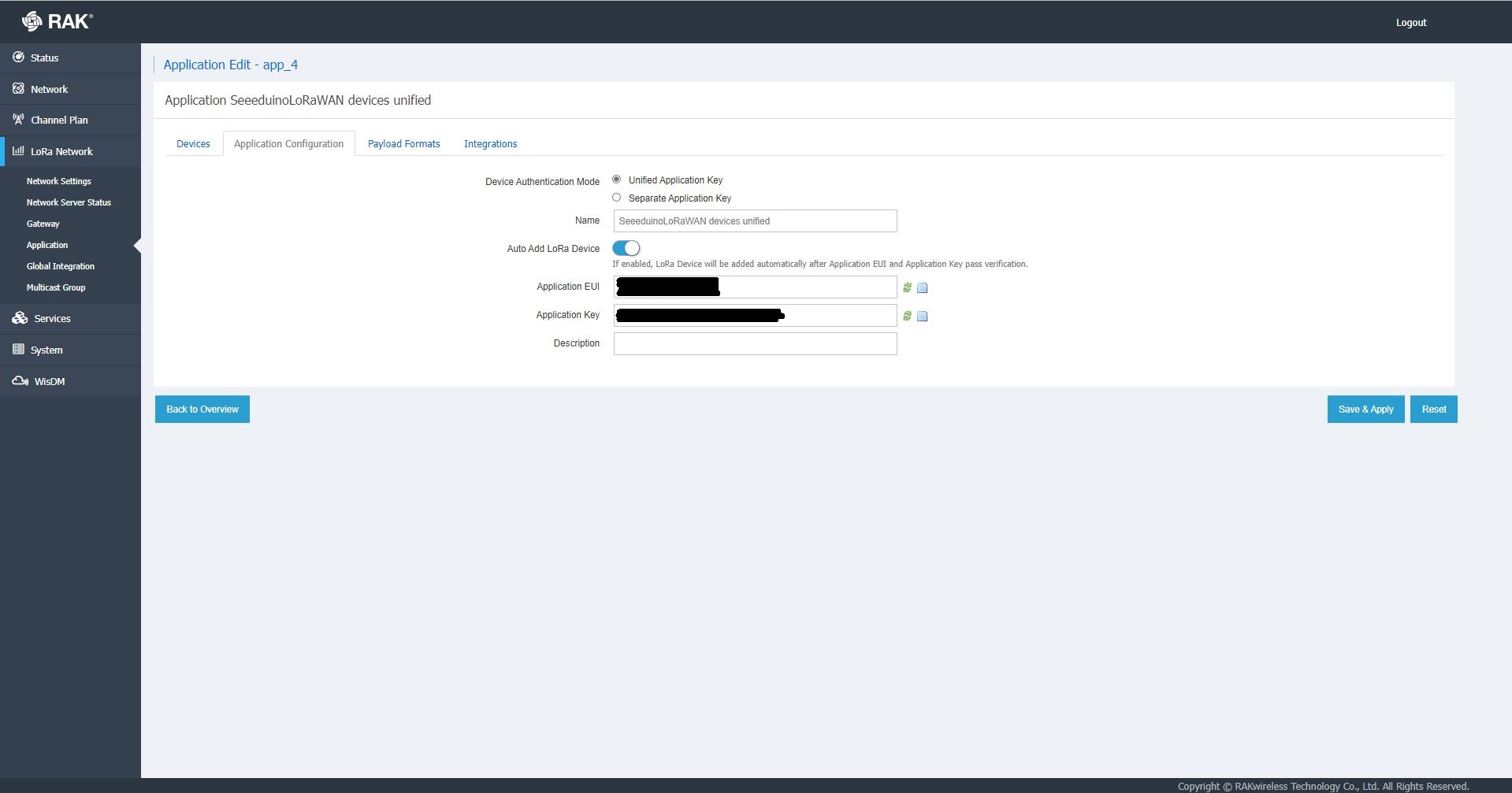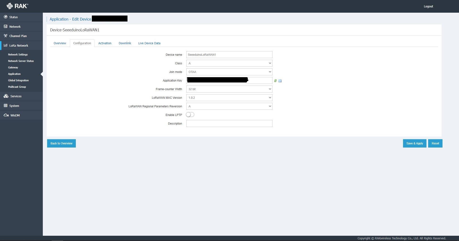 I then started exploring how applications and devices are provisioned in the RAK Network Server.