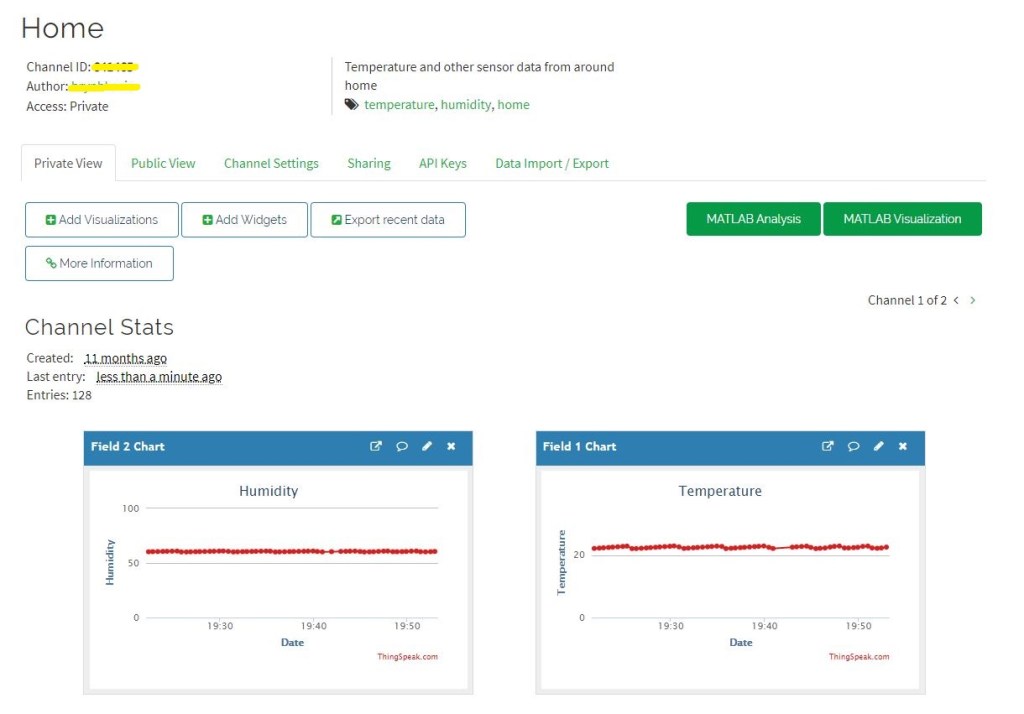 The Thingspeak dashboard configuration was fairly simple, though the maximum of eight sequentially numbered of inputs (Fields) might require some mapping code.