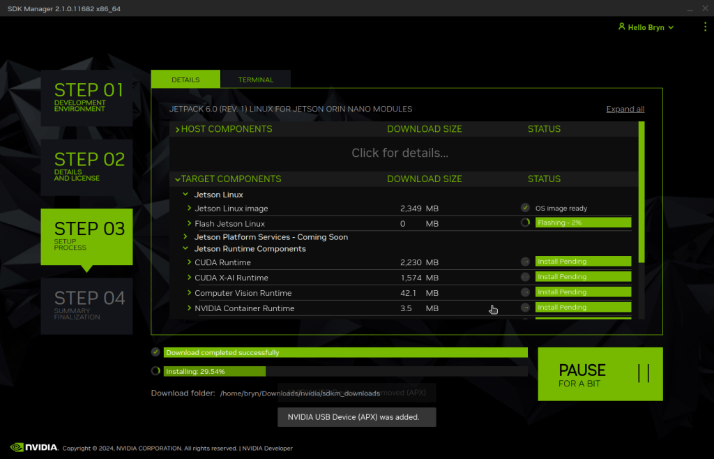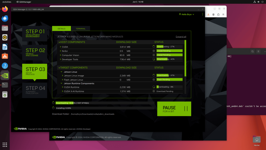 Downloading NVIDIA Jetpack 6 and all the selected components of the install can be quite slow