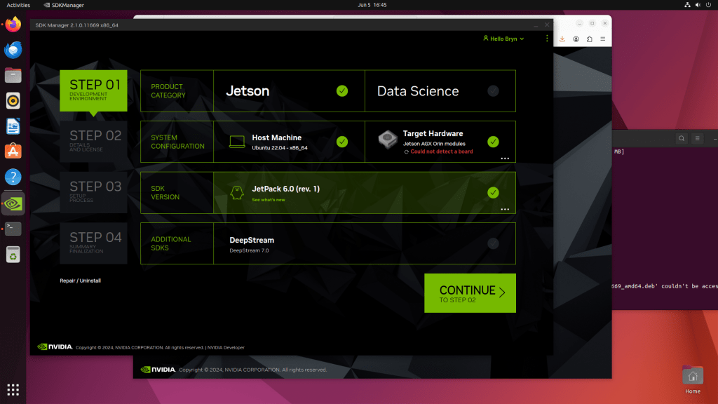 Installation of NVIDIA Jetpack 6 and selected components can take a while.