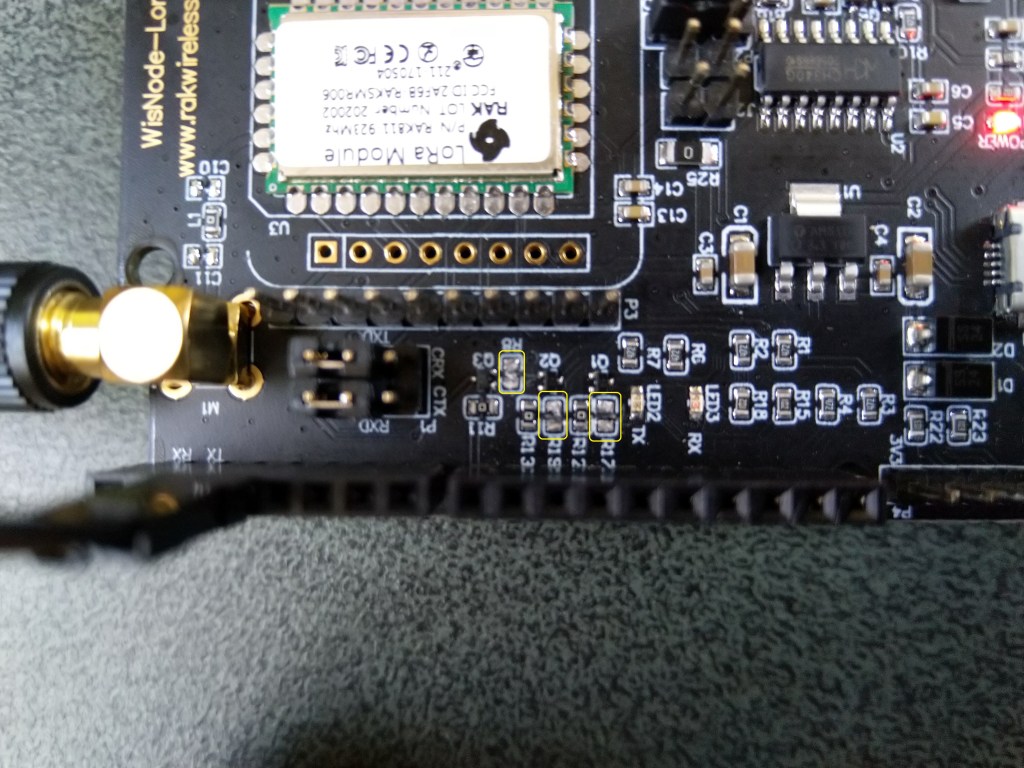 RAK811 EVB with R17,R19 & R8 cut