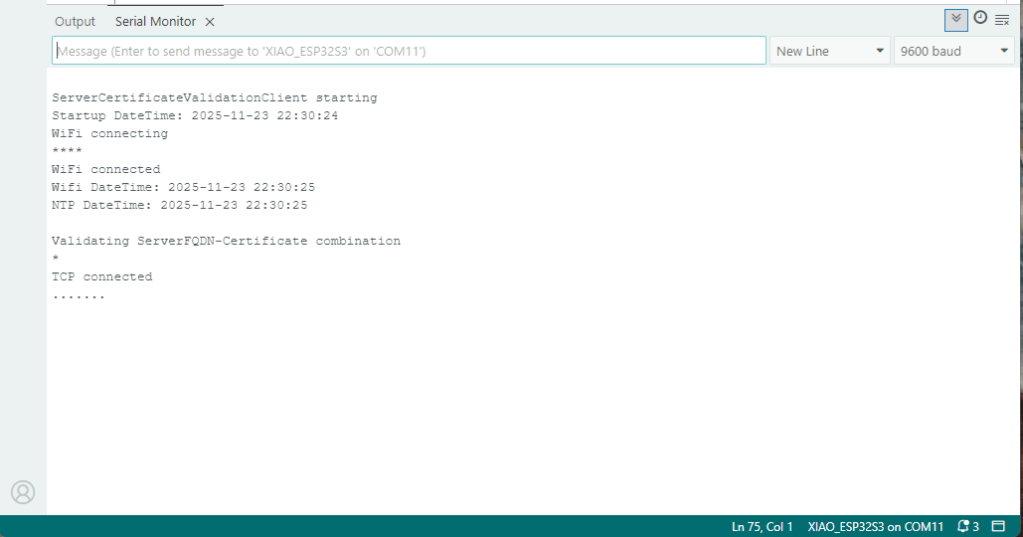 Serial.println("\nServerCertificateValidationClient starting");
