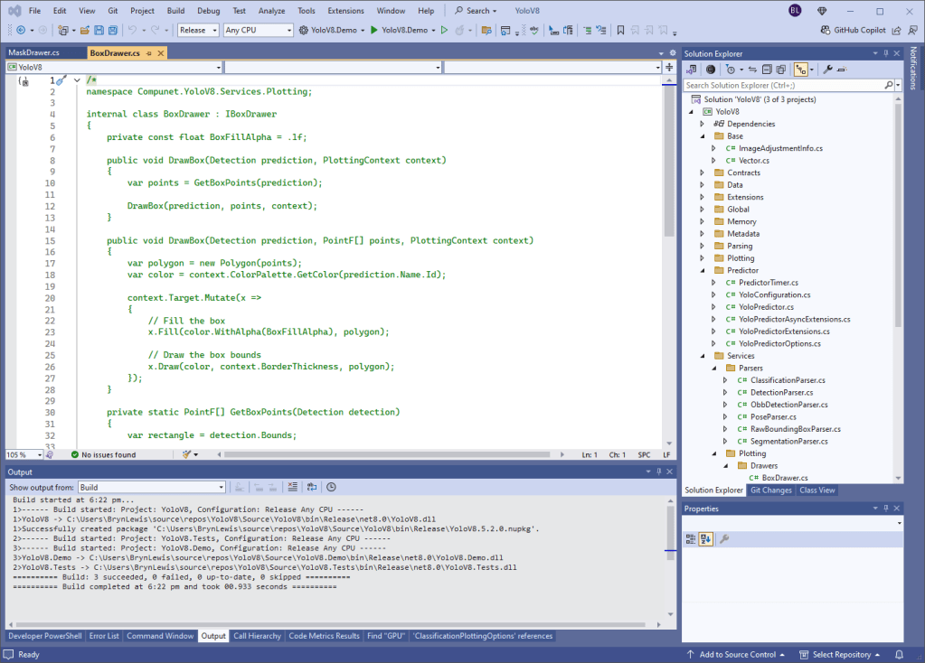 When I started with the Security Camera HTTP code and added code to process the images with Ultralytics Object Detection model I found the order of the prompts could make a difference. My first attempt at adding YoloSharp to the SecurityCameraHttpClient application with Github Copilot didn’t go well and needed some “human intervention”. When I thought more about the order of the prompts the adding the same functionality went a lot better.