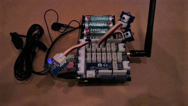 The students were always fiddling with their cellphones so I figured we would have a go at building a basic one. I had a spare set of ear buds and an Arduino 2.5G GPRS/GSM shield left over from an Internet of Things(IoT) project I had been working on.