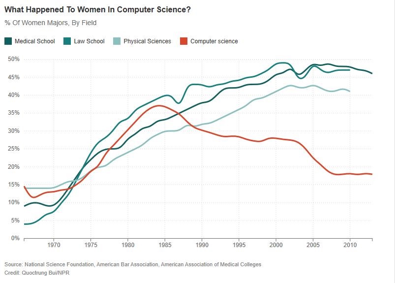 As a result of normal attrition, numbers dropped off. I did notice that the number of female students dropped off faster and then while walking home one day I happened to listen to this NPR podcast. Which lead me down a rabbit hole…